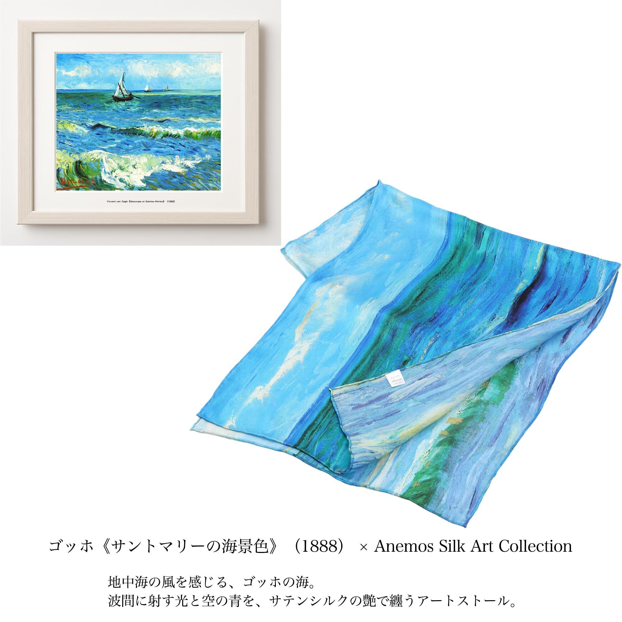 【特価商品】[Anemos] シルク 100% 印象派 画家 ゴッホ モネ 名画ストール 青のシリーズ
