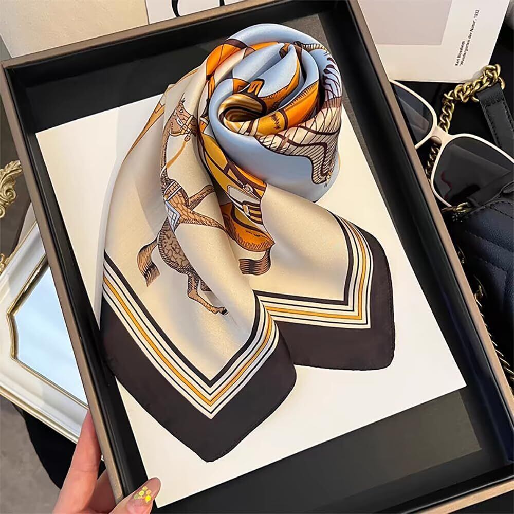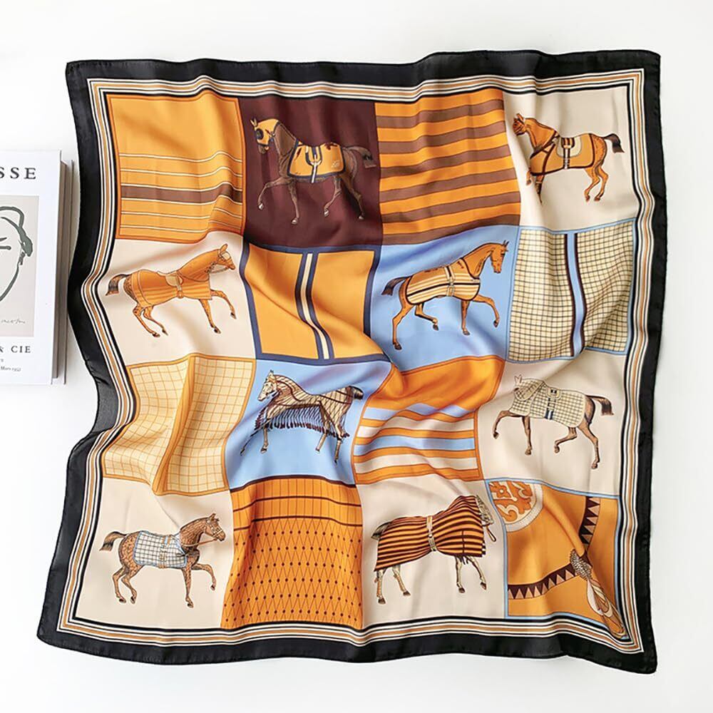 [HQYOULE] スカーフ レディース 70×70cm 正方形 ネッカチーフ バンダナ ショール 髪飾り ヘッドバンド リボンスカーフ シルク風 バッグ飾り 巻き方 多機能 お洒落 通勤 海辺 旅行 春夏秋冬