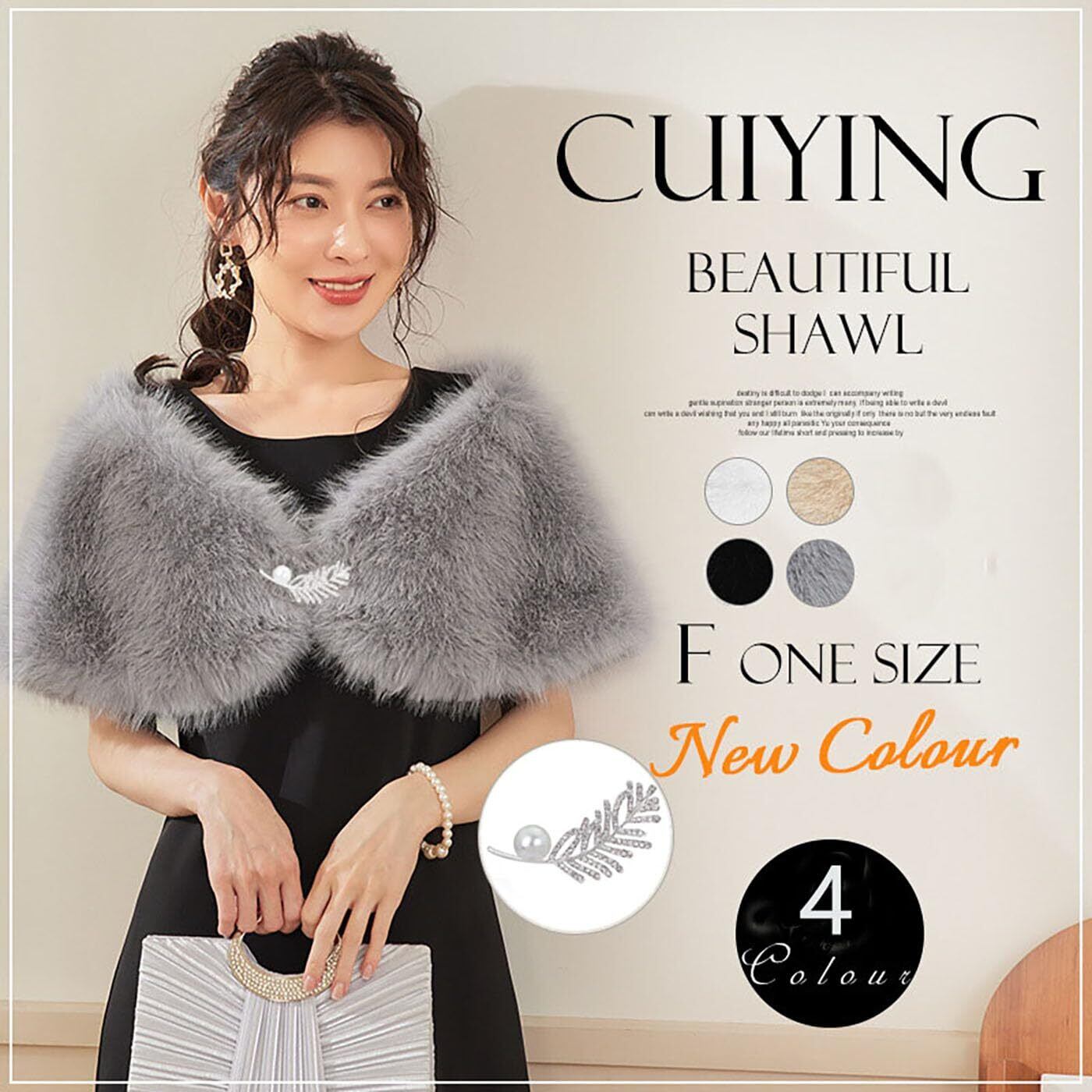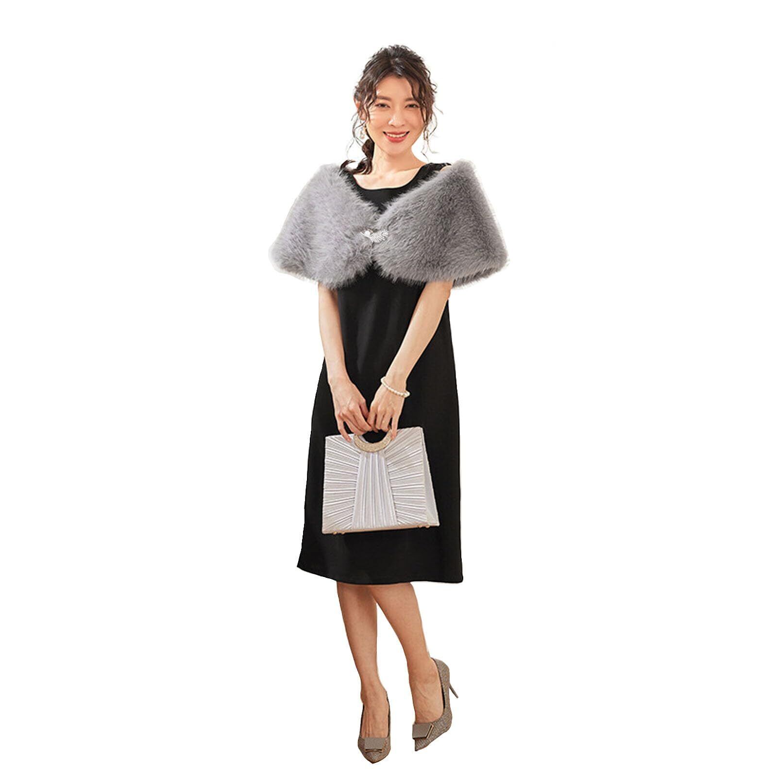 [Muzhilun] レディース ショール 最高級フェイクファー スカーフ秋冬 ブローチ付き 着物 和装 パーティドレス ファッション 披露宴 プレゼント 防寒