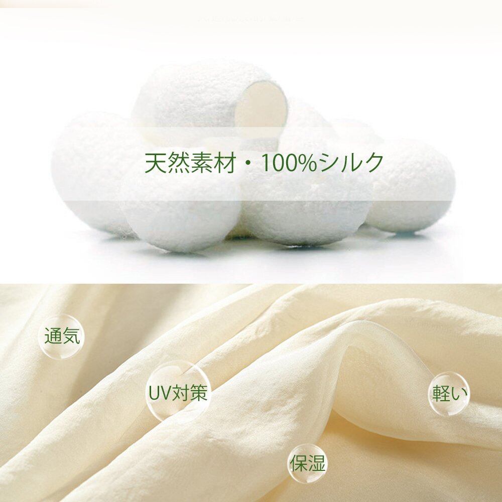 シルク100%のストールです。肌触りもよく、着心地もとてもやわらかいので、敏感肌の方にもおすすめです。吸湿性、放湿性、速乾性、保温性に優れ、サラサラとした気持ちのよい肌触りで、羽織るとふんわり暖かいです。