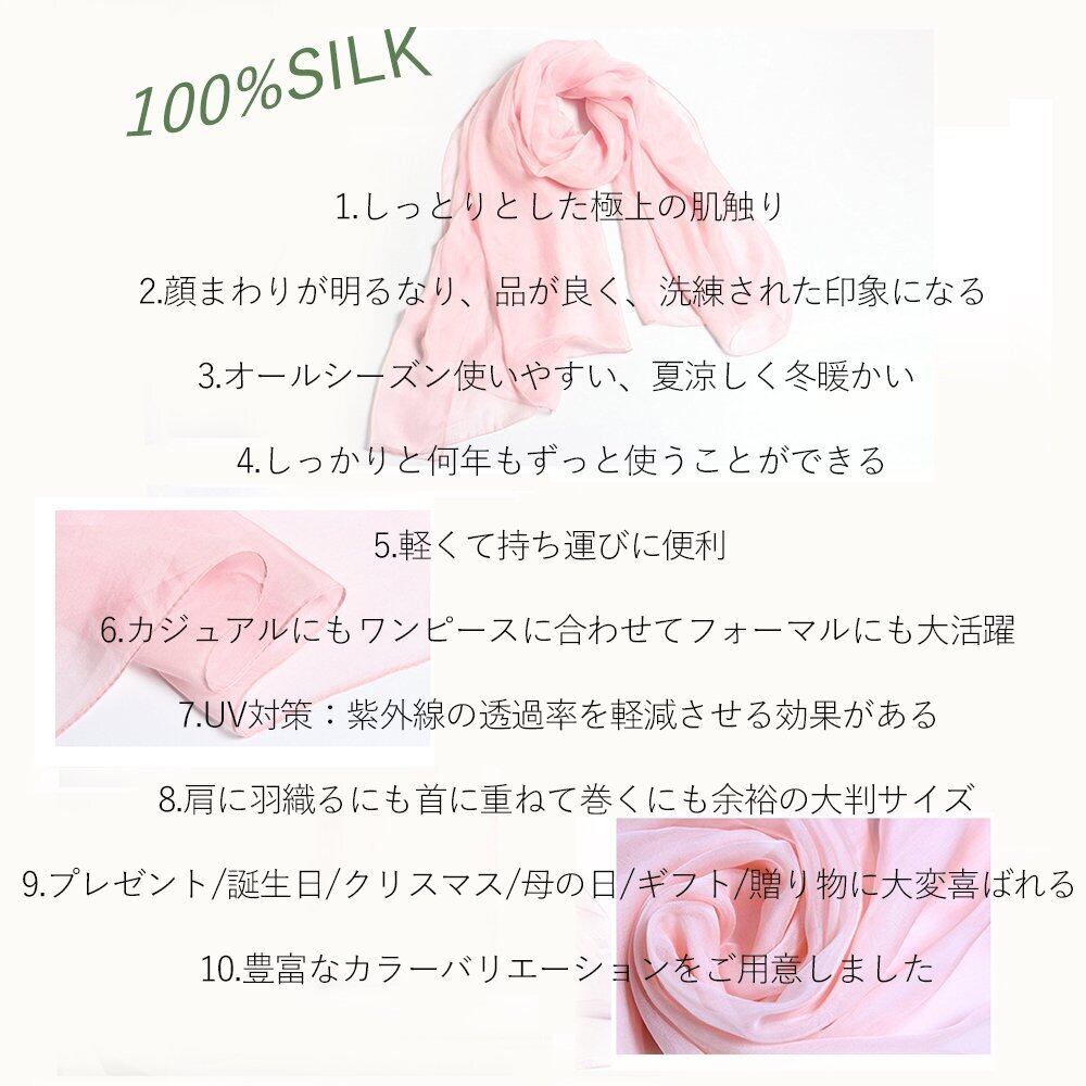 【2022最新】[PanPan Amore] 全23色 100% 絹 シルク ストール 大判 スカーフ 無地 シンプル 薄手 羽織り マフラー 冷房対策 uvカット 防寒 110*180cm