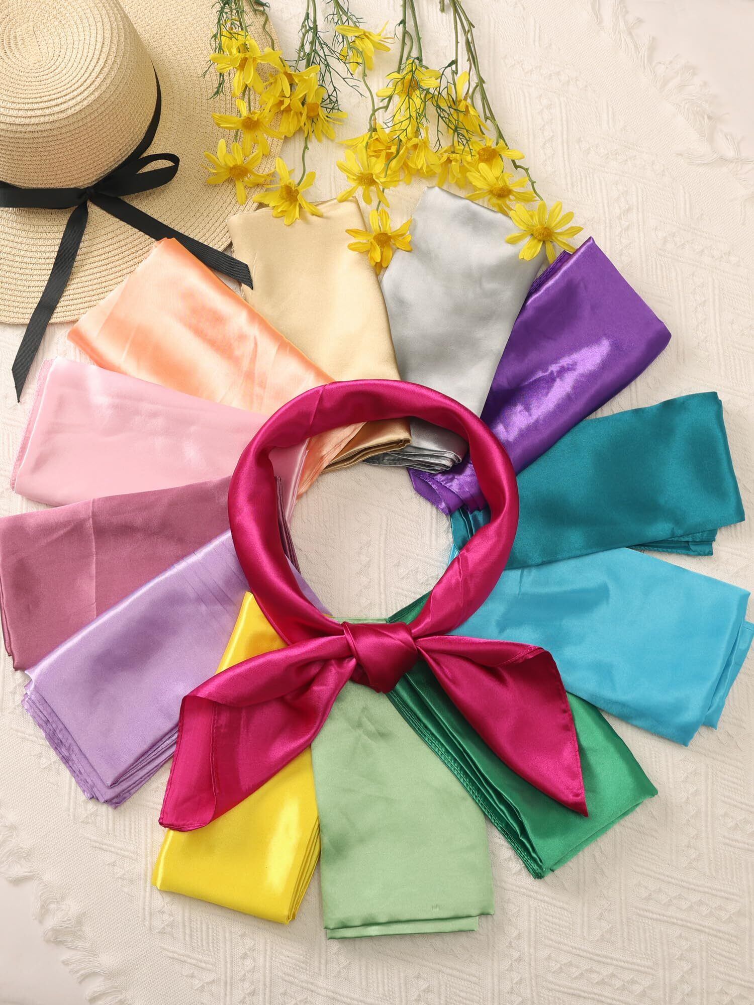 [Elerevyo] スカーフ サテン 女性 ソリッド スクエア シルキー ネックスカーフ ネッカチーフ ヘッドラップ 90x90cm