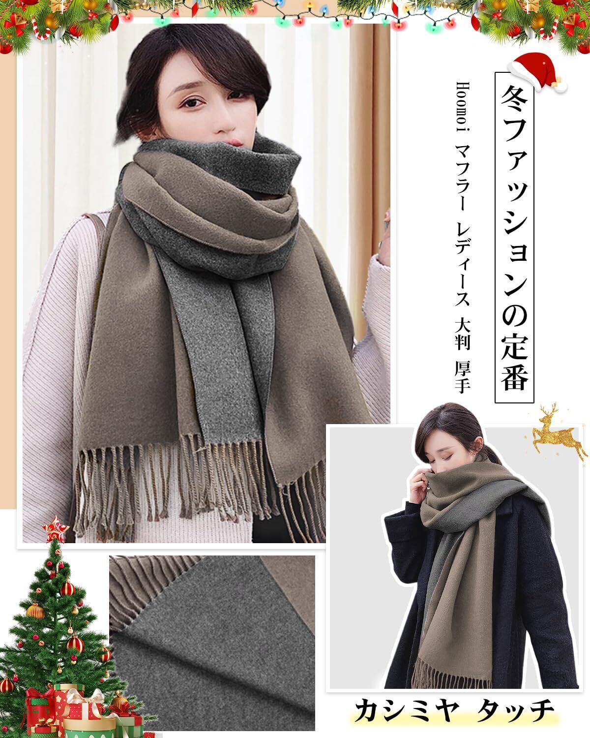 【数量限定】[Hoomoi] マフラー レディース 人気 カシミヤタッチ ストール 大判 マフラー ファッション 冬 厚手 両面 使える ギフトボックス付き 無地 学生 誕生日プレゼント フリンジ生地 襟巻き 秋冬定番 クリスマスプレゼント