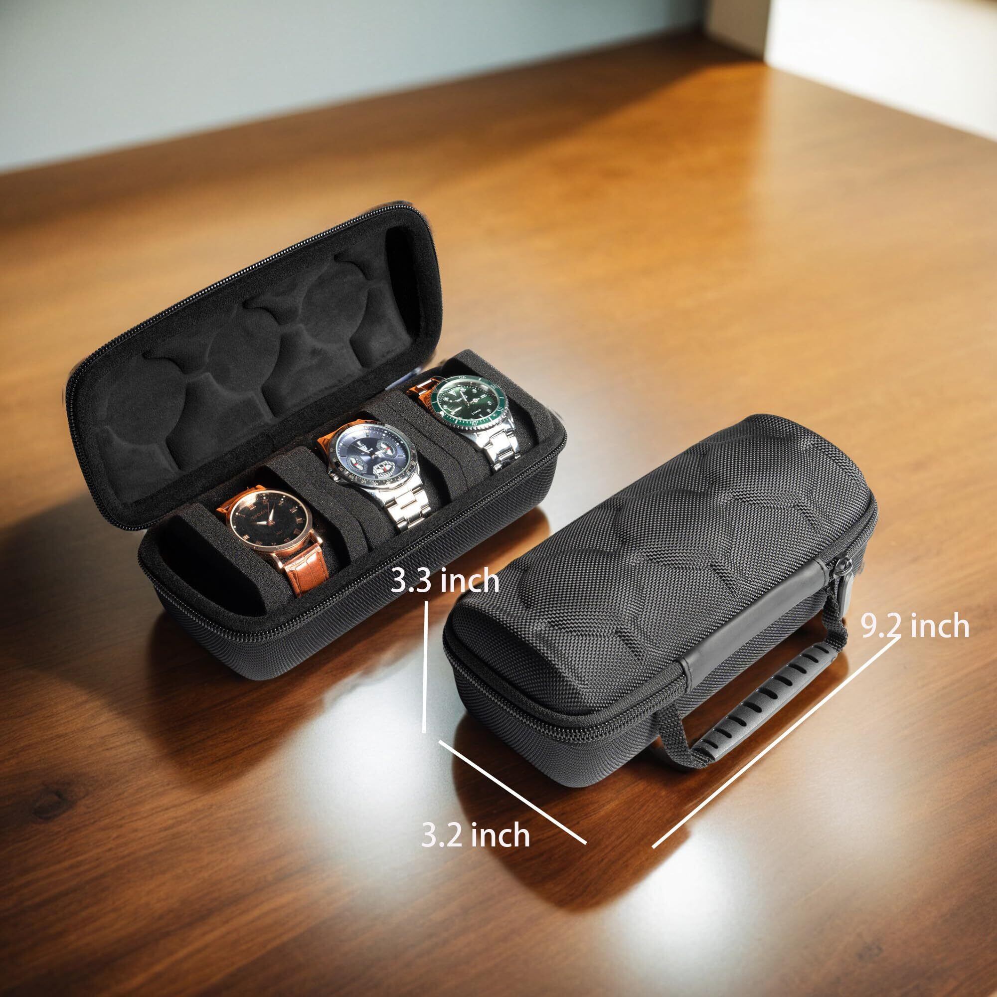 【数量限定】3スロット ハードウォッチトラベルケース 腕時計ロールケース 収納 オーガナイザー 男女兼用 動かない 腕時計枕 (ブラック生地 3スロット)