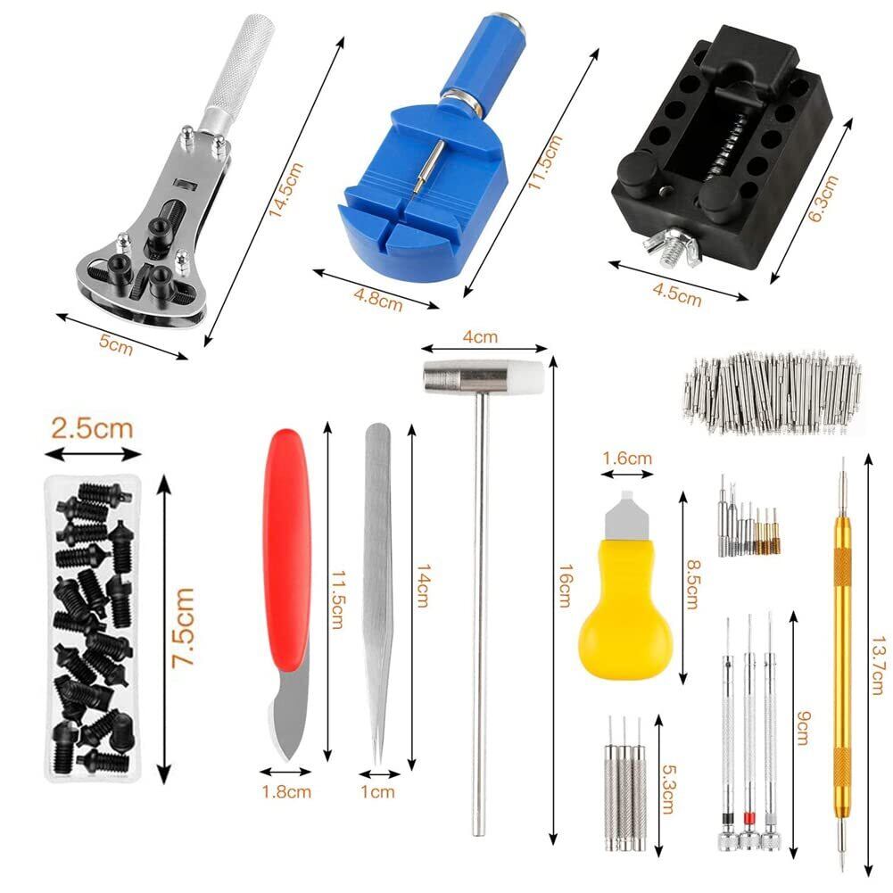 時計工具 腕時計工具 修理工具セット 電池交換 ベルト交換 バンドサイズ調整 ベルト修理ツール バネ外し 裏蓋開け 裏蓋オープナー コマ外し バンド修理専用工具 147点セット