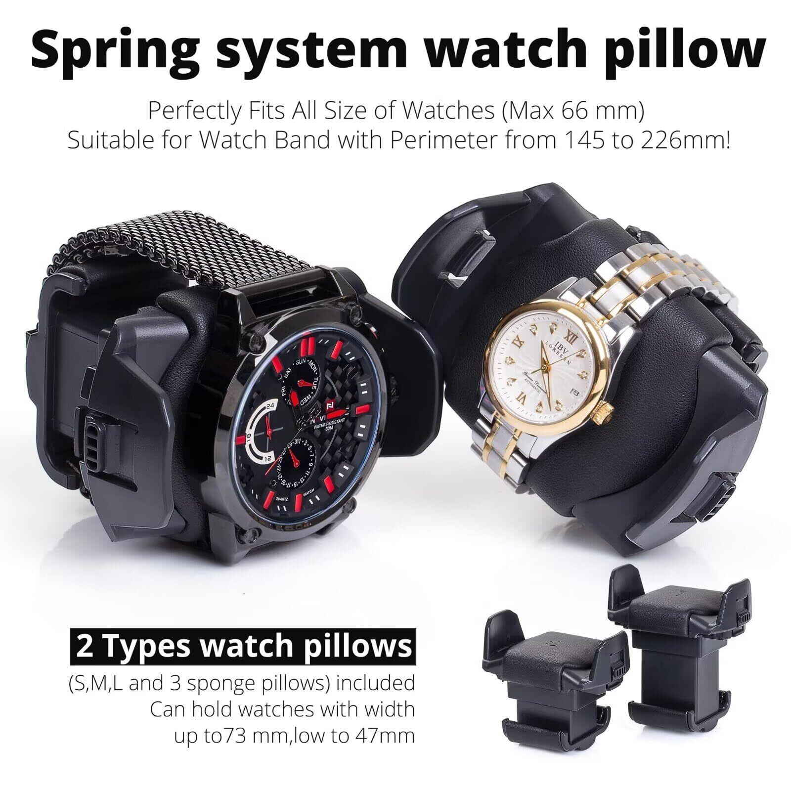 【精巧な仕上げ】高級カーボン素材の外装とPUレザー内装を採用した自動巻き上げ器です。心地よい触り心地と長持ちする耐久性を実現。内蔵されたLEDブルーバックライトは暗闇でも正確かつ素早く時間確認が可能なだけでなく、時計を優雅に展示します。