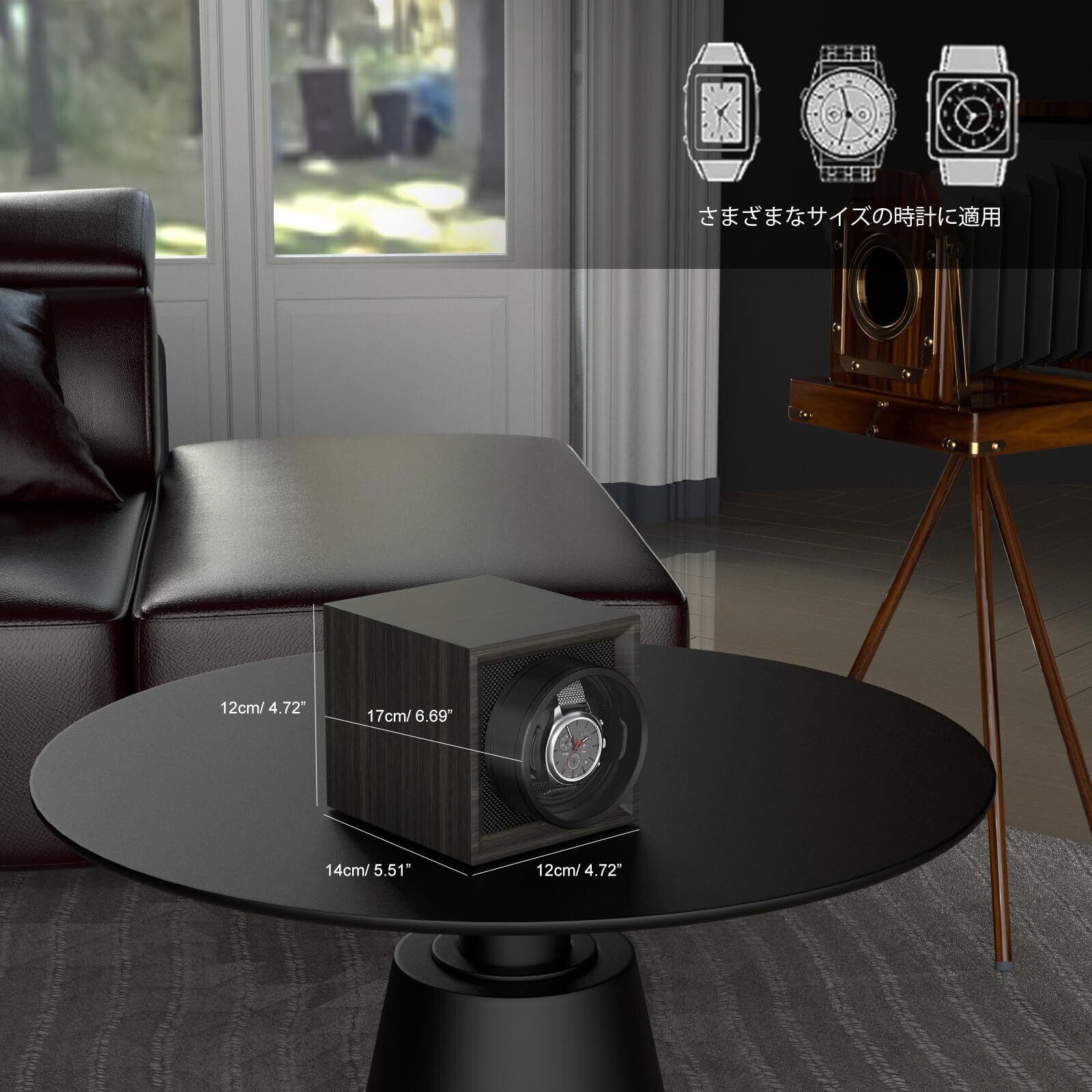 【回転モード&使用やすい】自動時計ワインディングマシーンはスマートな回転テクノロジーを搭載しています。時計回りに 2 分間回転して 8 分間停止し、次に反時計回りに 2 分間回転して 8 分間停止を繰り返します。定期的に回転することで、腕に着けていないときでも自動巻き時計の巻き上げと正確さを保ちます。使い方は簡単、電源スイッチを入れるだけで自動で運転します。