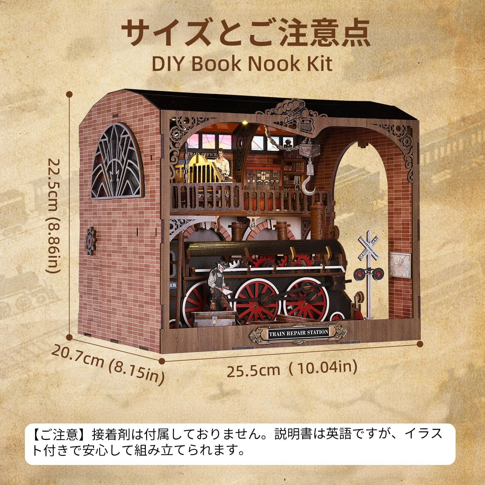 ブックヌック ドールハウス リーズ ミニチュア ハウス ログハウス キット 木製 立体パズル 手作り 大人向け LEDライト付き(蒸気鉄道の工房)