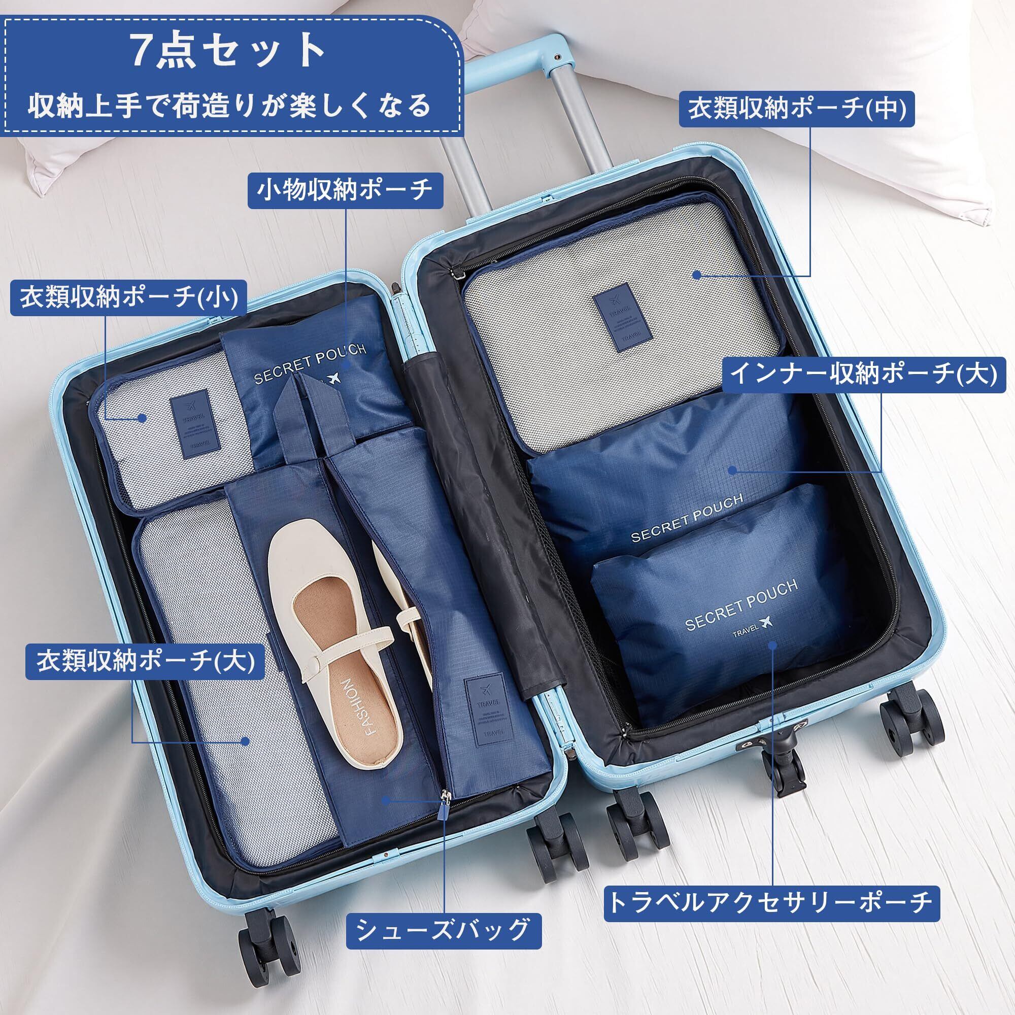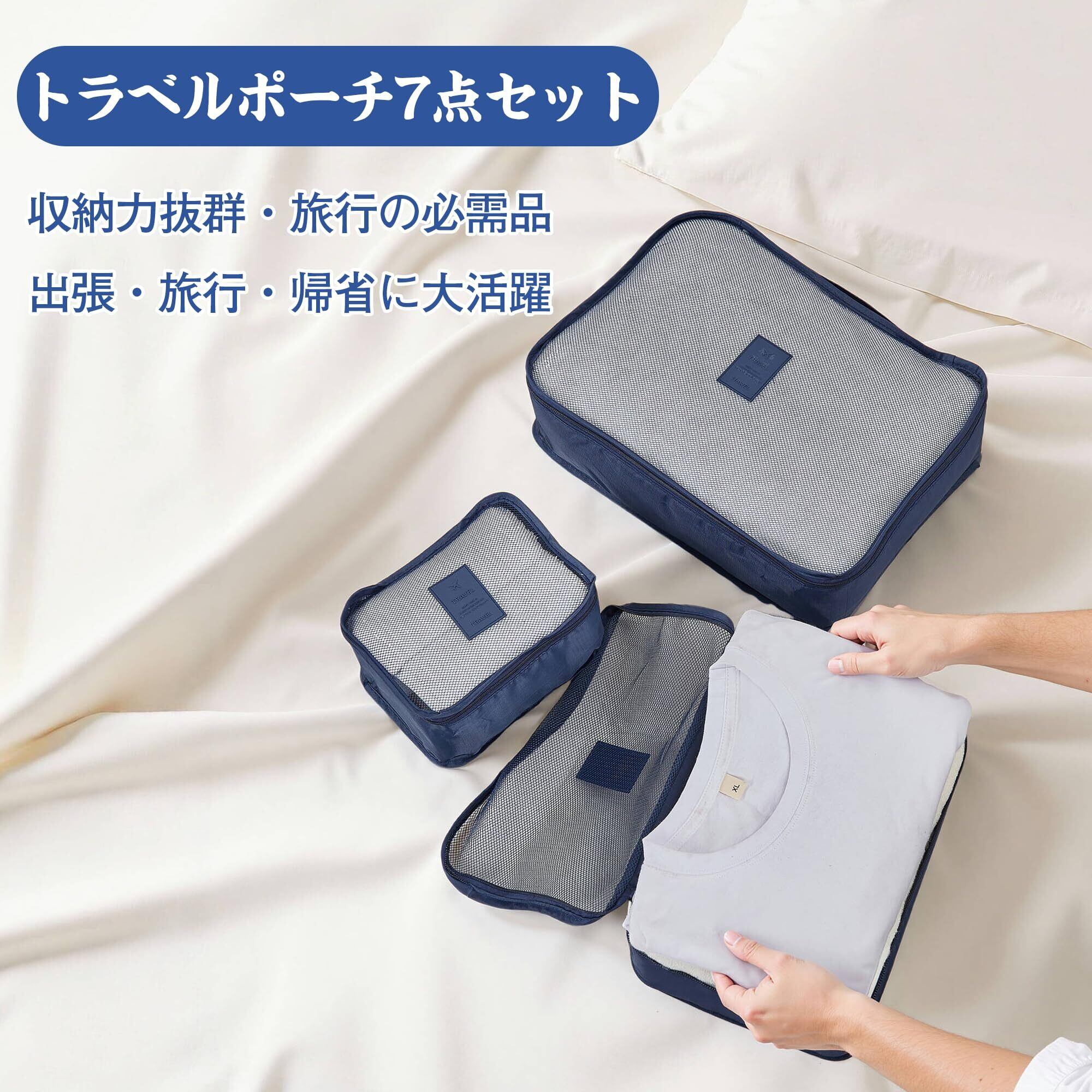 【新着商品】VECELO トラベルポーチ 7点セット 海外旅行 便利グッズ 財布travel bag トラベルグッズ 旅行用 衣類 整理 小物入れ 洗面用具 出張 たびとら 収納 旅行 ポーチ トラベルバッグ トラベルポーチ メンズ パッキングポーチ 靴用 下着収納 吊り下げ ダークブルー