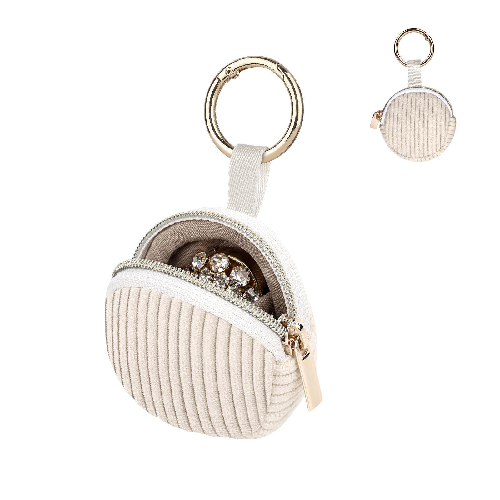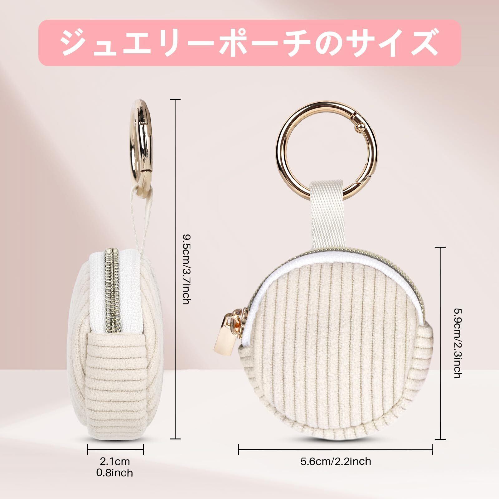Desing Wish ジュエリーポーチ 1個 リング 指輪 ポーチ ミニ小物いれポーチ 携帯用 コーデュロイジュエリーホルダー収納 リングバックル付き 持ち運びピアス ネックレス 指輪 リング イヤリング 収納袋 ラッピング袋 プレゼント用 ギフトバッグ(Beige)