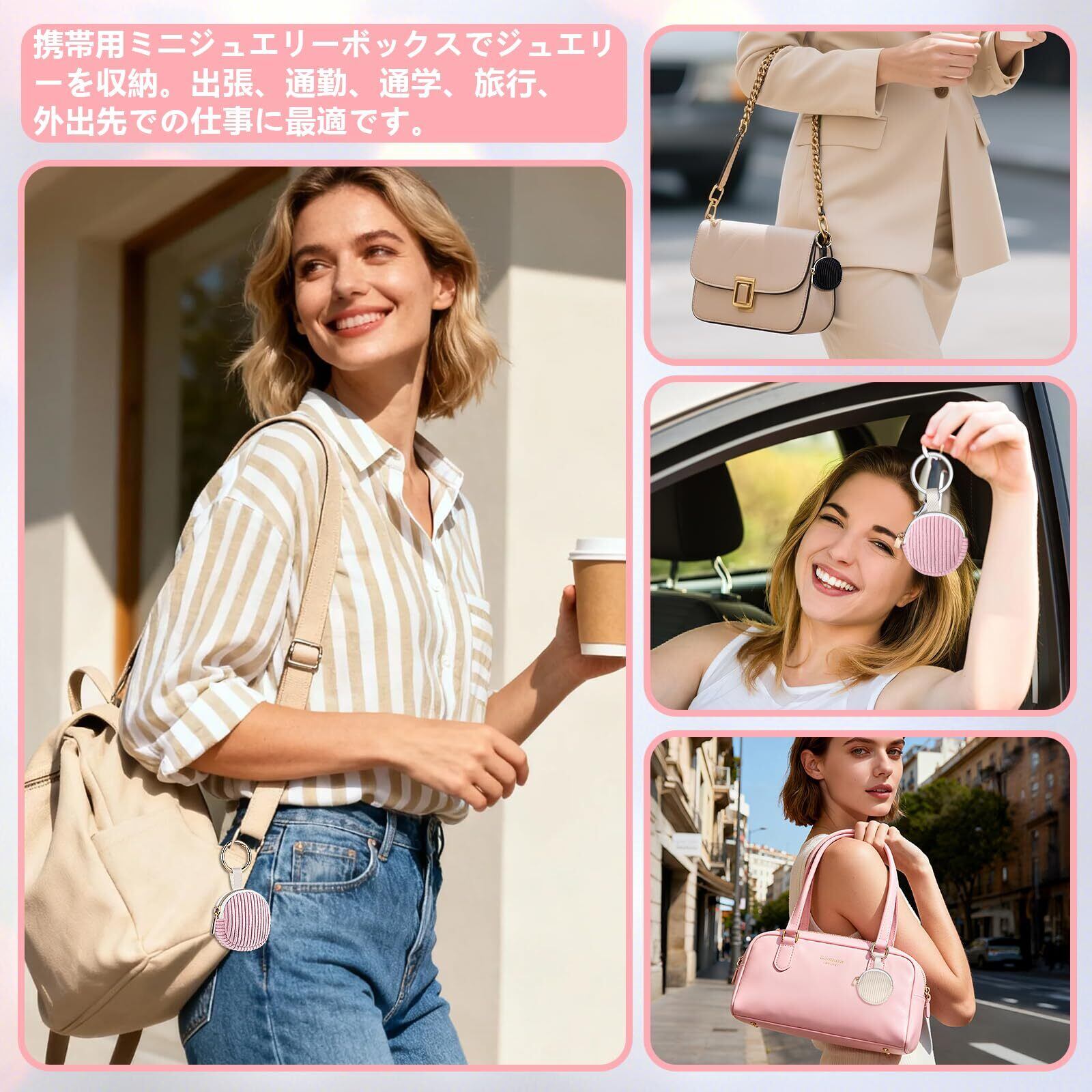 【ポータブルジュエリートラベルケース】ショッピング、ジム、仕事、旅行、または自宅でリラックスしているときなど、このアクセサリーはジュエリーを傷、衝撃、紛失から守り、見た目に優雅さを加えます。