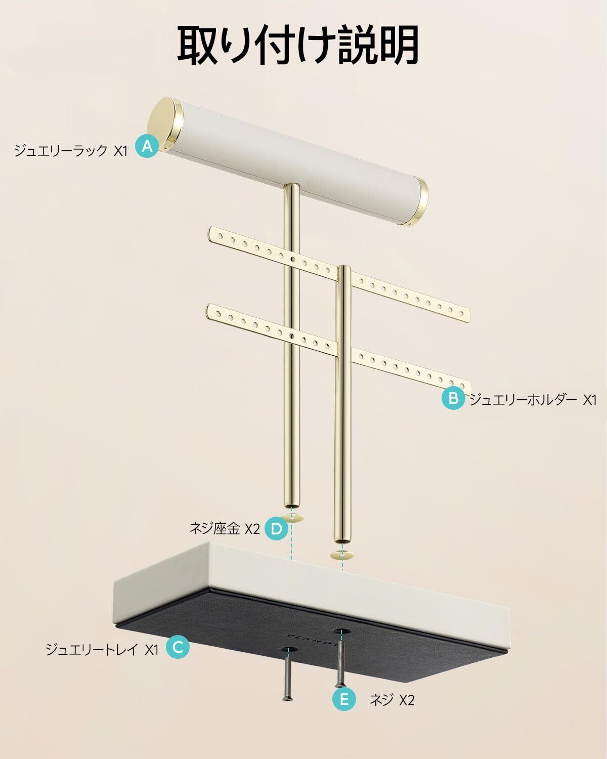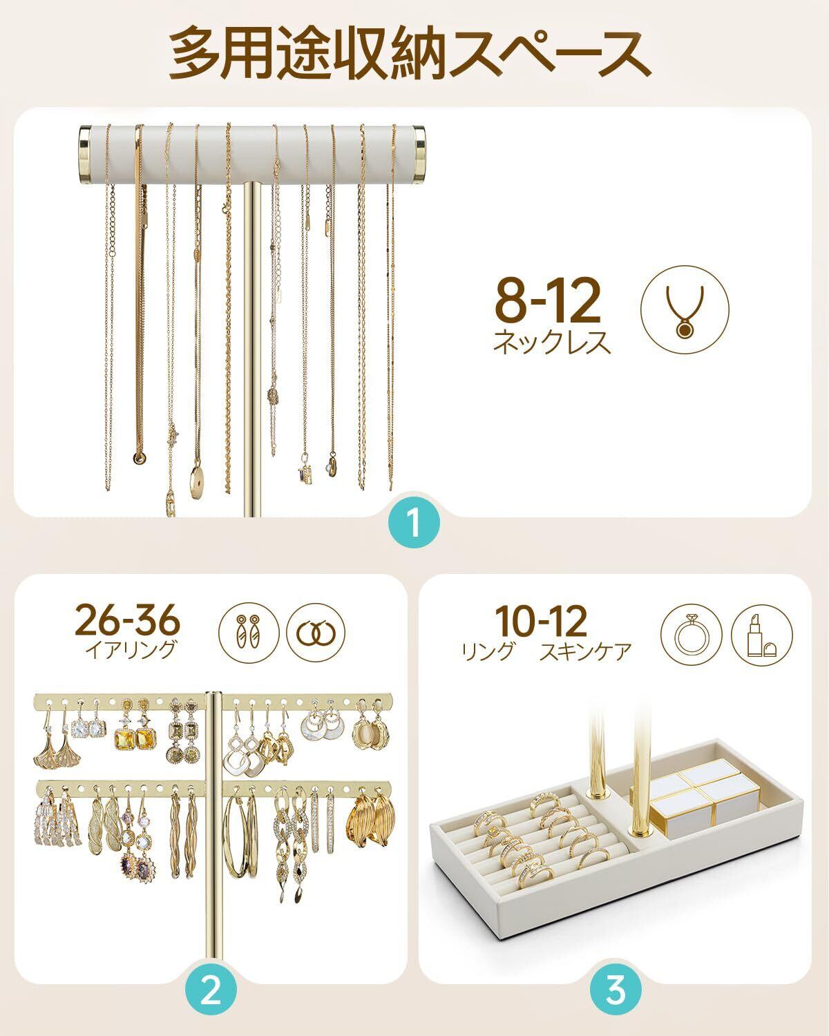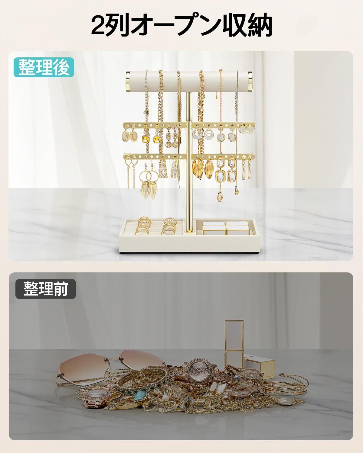 【特価商品】Vlando アクセサリースタンド 2段 ネックレススタンド PUレザー トレー アクセサリー収納 ジュエリーケース ネックレス ピアス リング ブレスレット フック 誕生日プレゼント クリスマス 女性用(アイボリー)