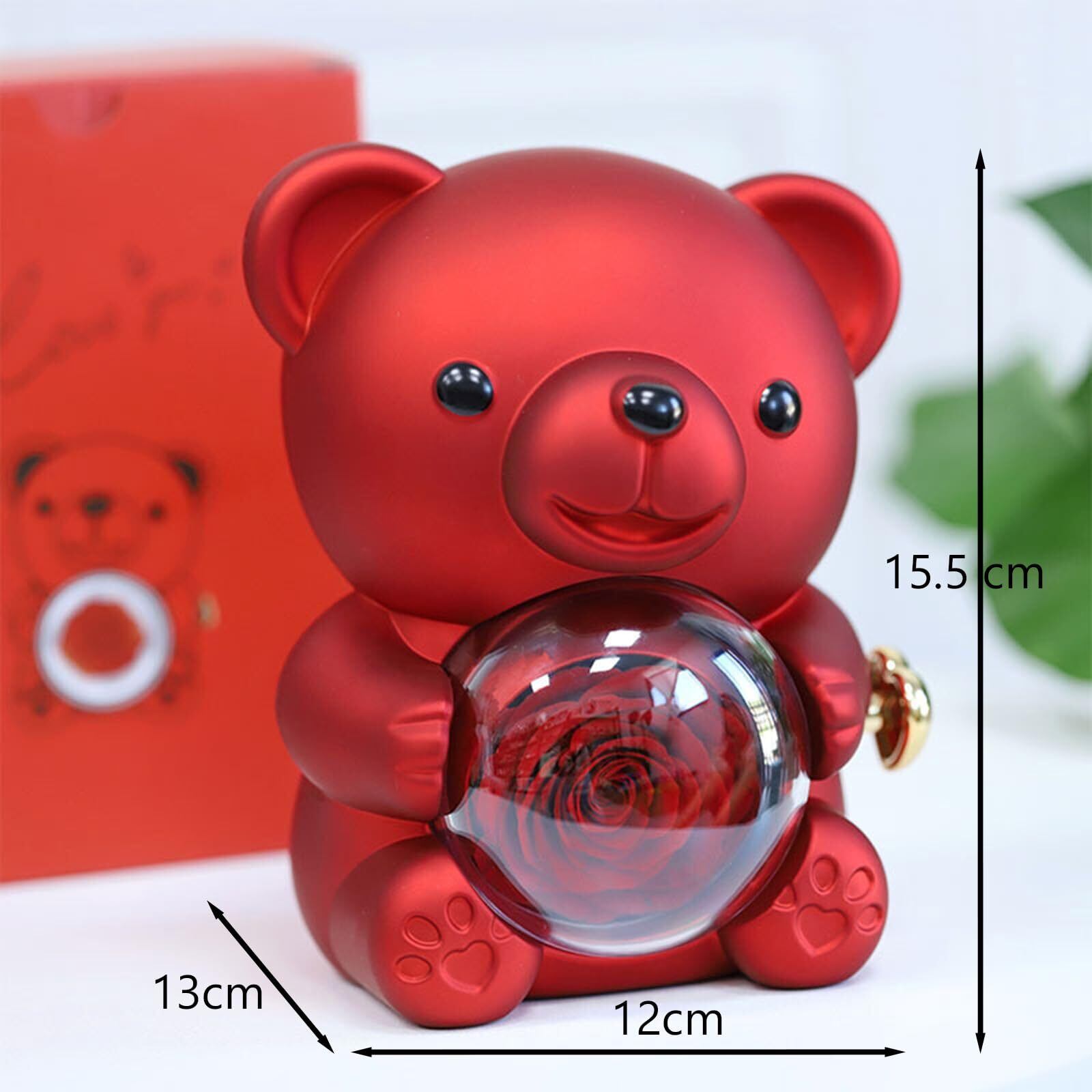 本物のバラのベアのギフトボックス付き: この絶妙なギフト セットには、永遠の愛を表す本物のバラのプリザーブドフラワーが、回転するベアのボックスにエレガントに飾られています。ボックスのユニークなデザインは、包みを開ける体験に魅惑的な要素を加え、愛する人への心のこもった忘れられない贈り物になることをします。
