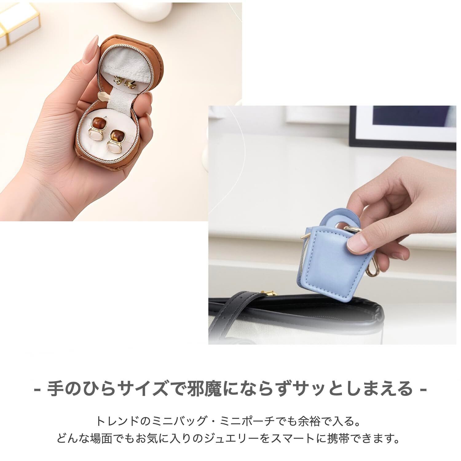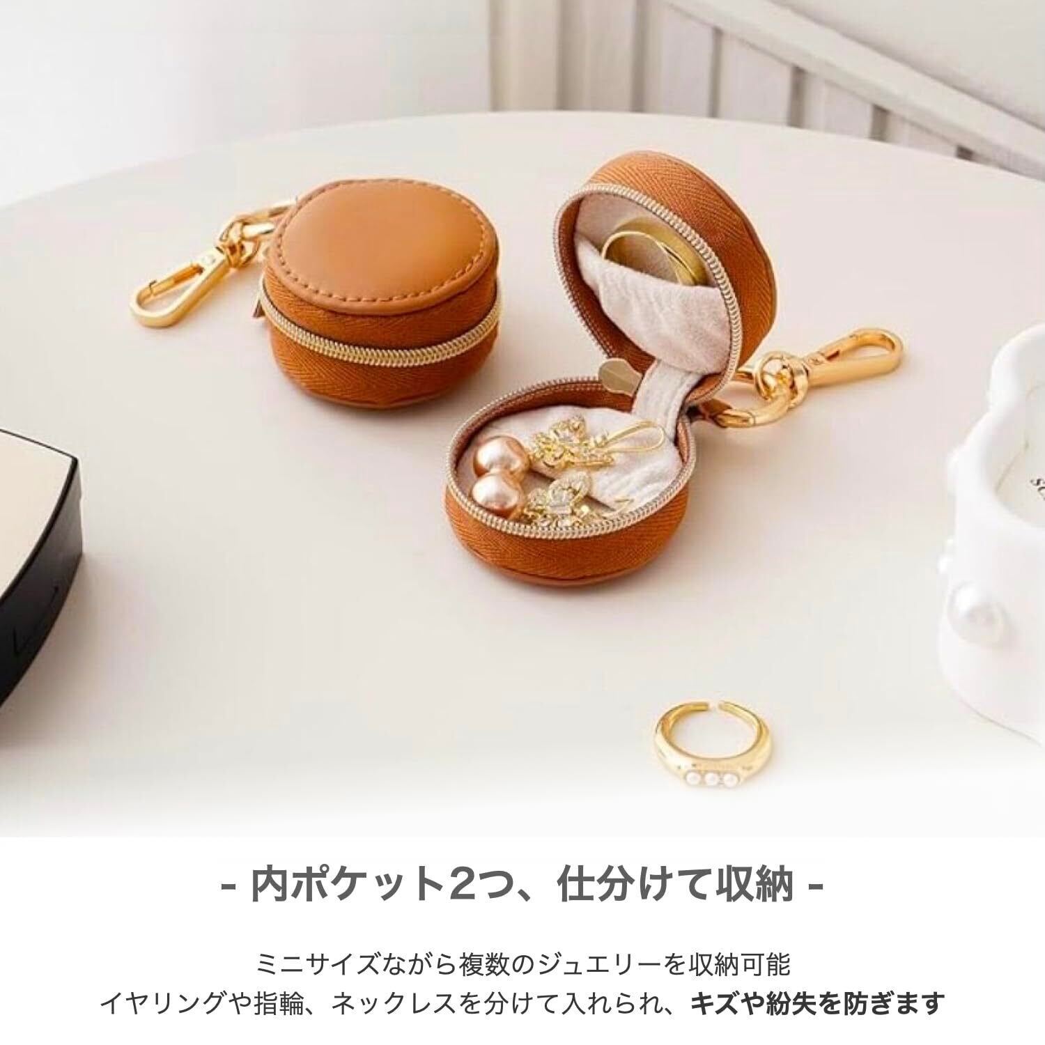 【毎日持ち歩ける可愛いミニサイズ】なくしがちなピアスや指輪をしっかり守る、安心のジュエリーケース。リングやネックレスなどの小さな貴重品を、失くさずスマートに携帯できます