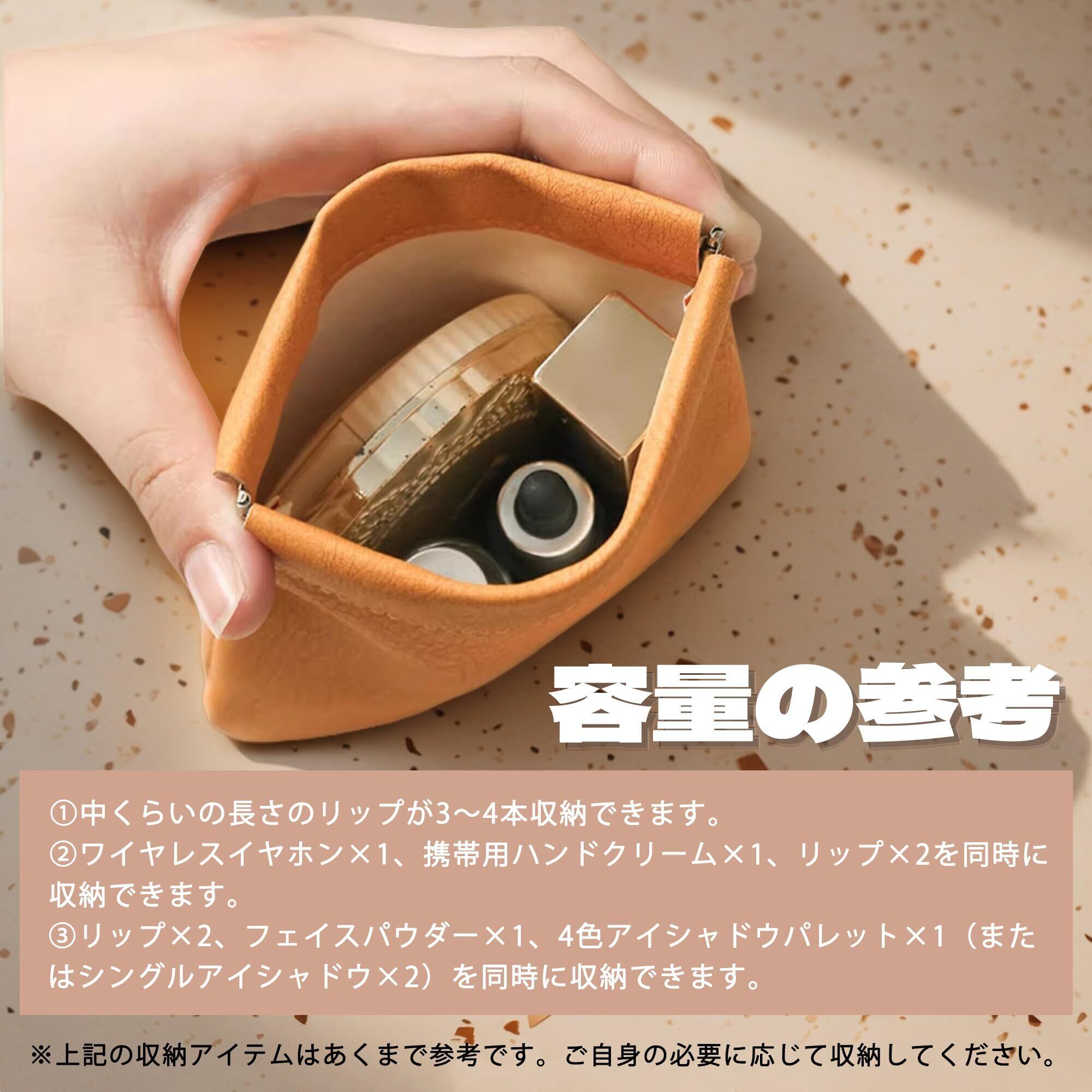 【複数カラー展開】小物入れ ポーチ 小さいはオレンジ、ピンク、ブルー、グリーンの4色から選択可能。ふっくらとした丸みを帯びたシルエットがおしゃれで、様々なスタイルに合わせやすくなっています。自用または贈り物としても、優雅なセンスを際立たせます