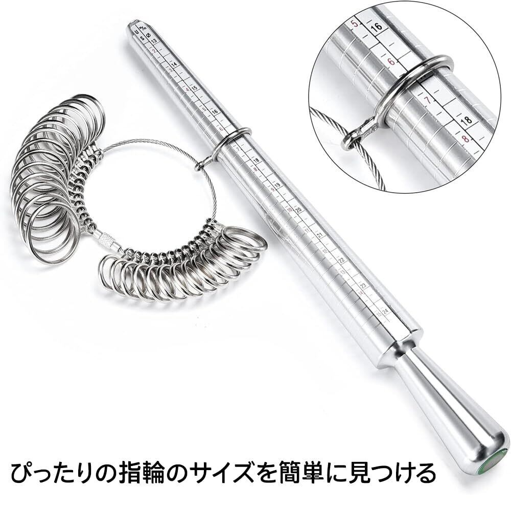 リングゲージ リングゲージ棒 2点セット 日本標準規格対応 指輪 サイズ 計測 1号-28号 アルミ合金製 高精度測定 自宅で簡単 ジュエリーDIY プロ仕様 (シルバー)
