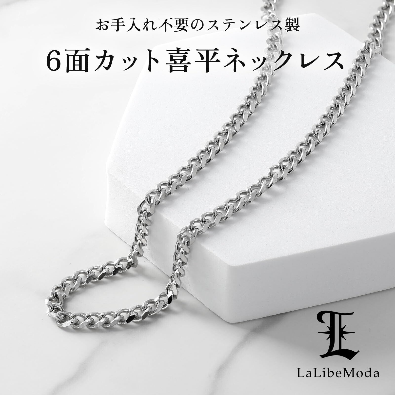 [La LibeModa] 喜平 ネックレス メンズ チェーンのみ ステンレス 6面カット 金属アレルギー対応
