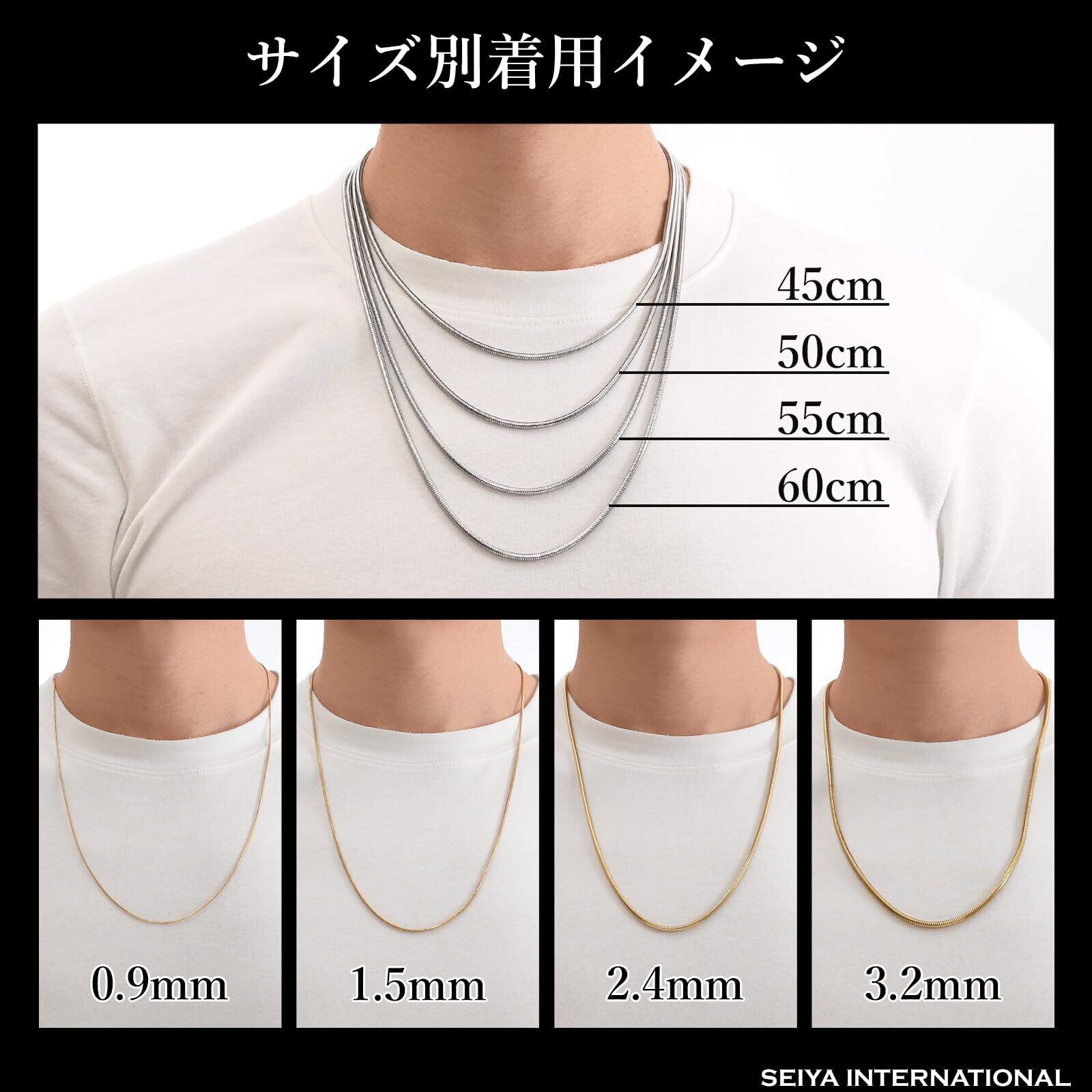 【新着商品】[SEIYA INTERNATIONAL] ネックレス メンズ チェーン ステンレス スネークチェーン