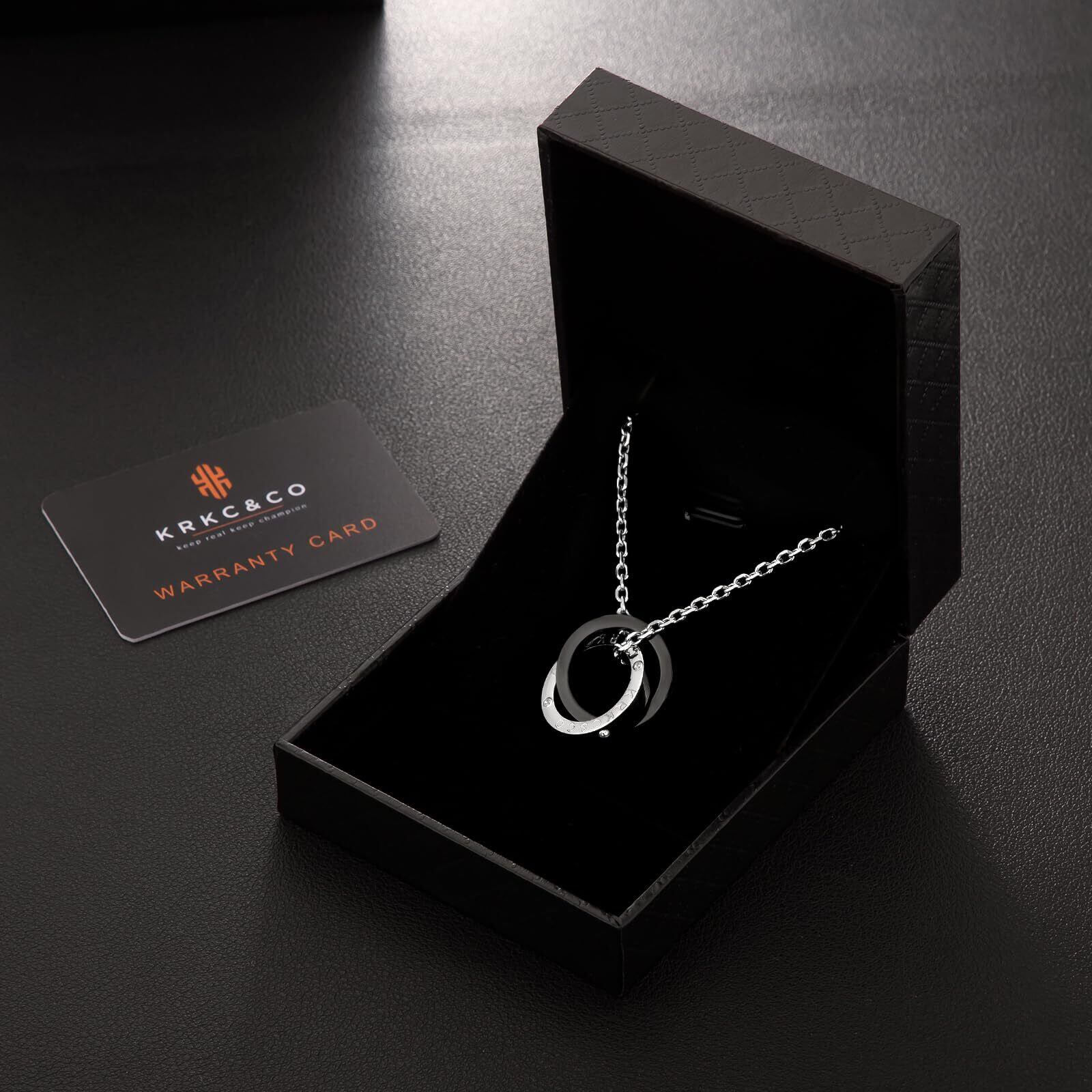 KRKC&CO リングネックレス メンズ 誕生日プレゼント 男性 ペンダントトップ チェーンネックレス ダブルリング サージカル ステンレス ペアネックレス 男女兼用 シルバー ブラック 金属アレルギー対応
