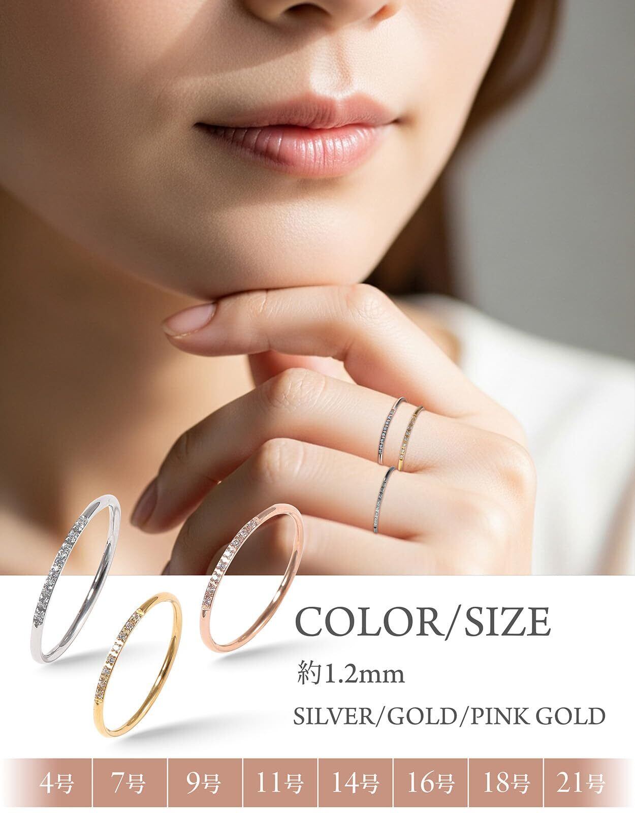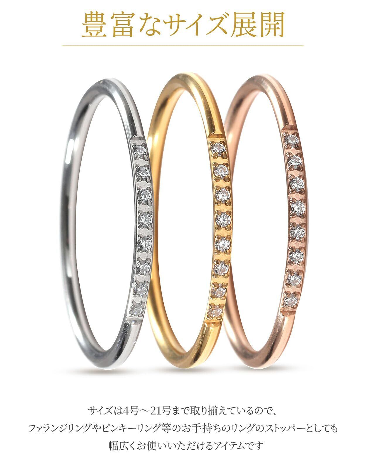[GREG] リング 指輪 金属アレルギー対応 サージカルステンレス ニッケルフリー ステンレス K18GP 華奢リング 1.2mm キュービックジルコニアリング 8粒 シンプル レディース メンズ 4号~21号