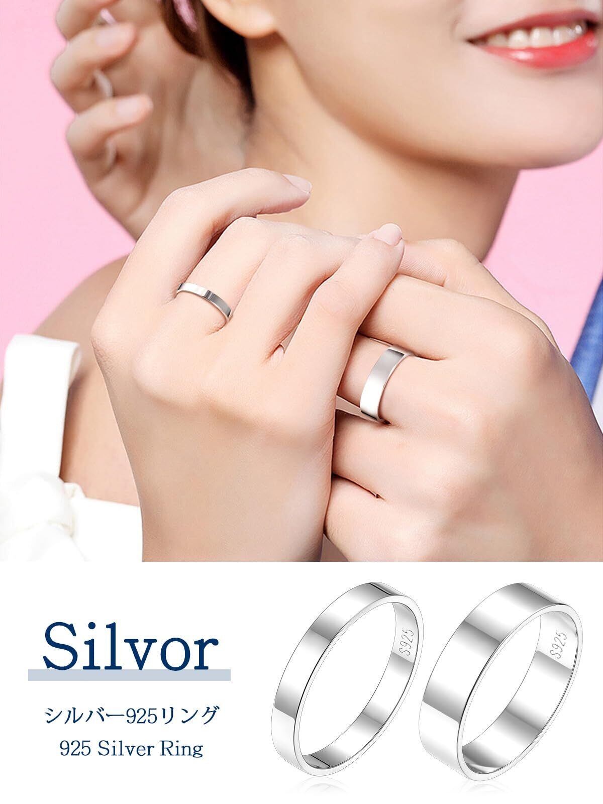 【特価セール】[Silvora] シルバー925 指輪 メンズ シンプル リング レディース 人気 平打ち 幅3ミリ/5ミリ ペアアクセサリー
