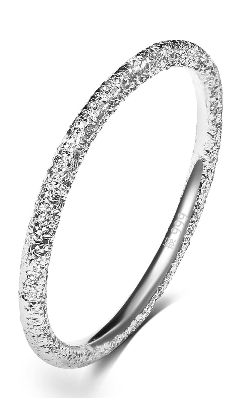 083BASE | 999純銀製レディースリング・細身1mm幅・ピンキーリング・エレガントサンドブラスト仕上げ・シンプルシルバーリング
