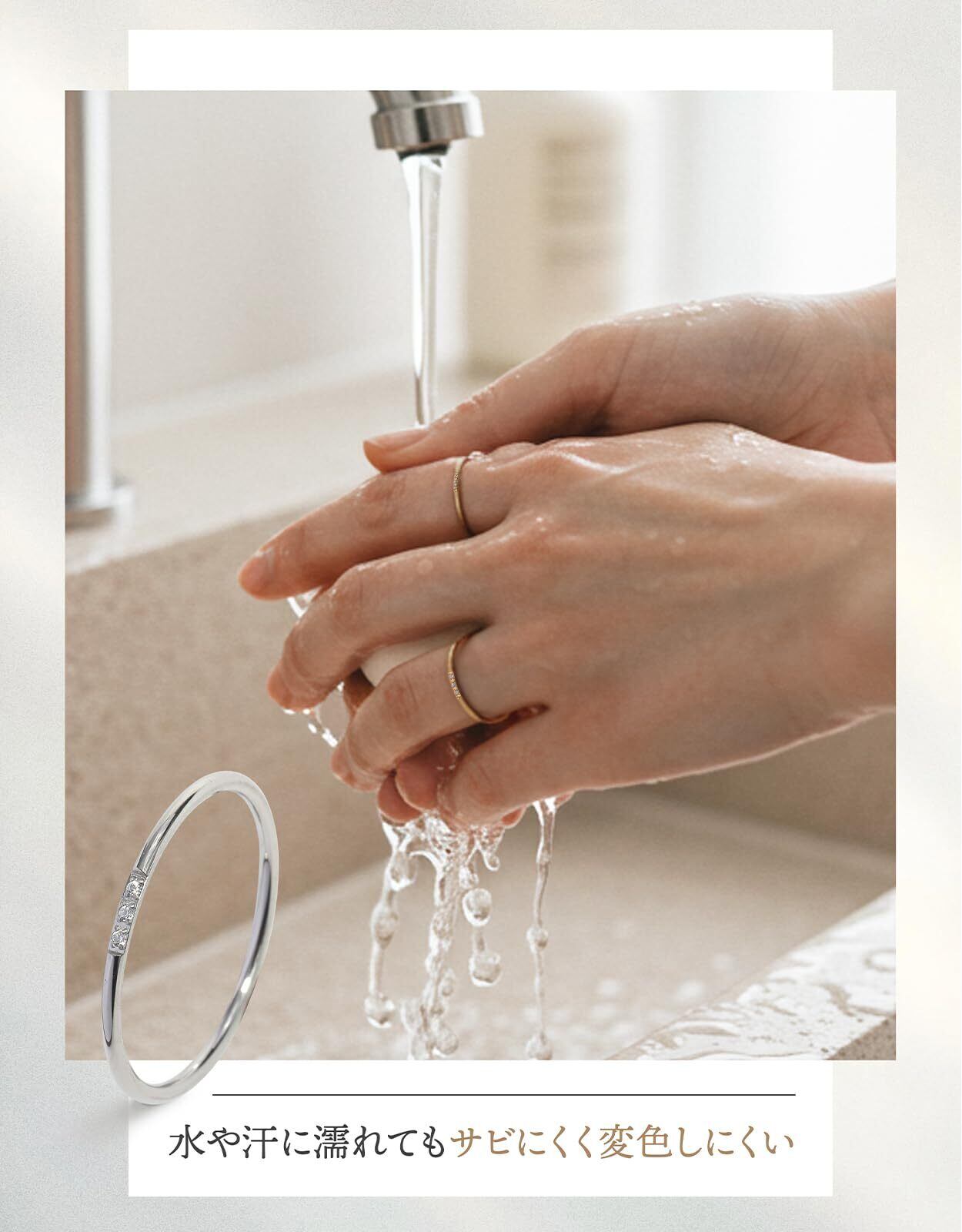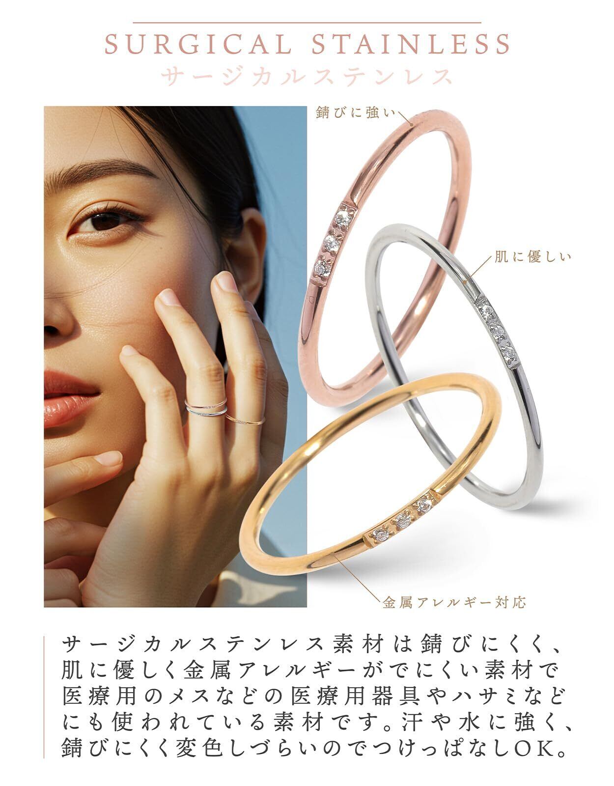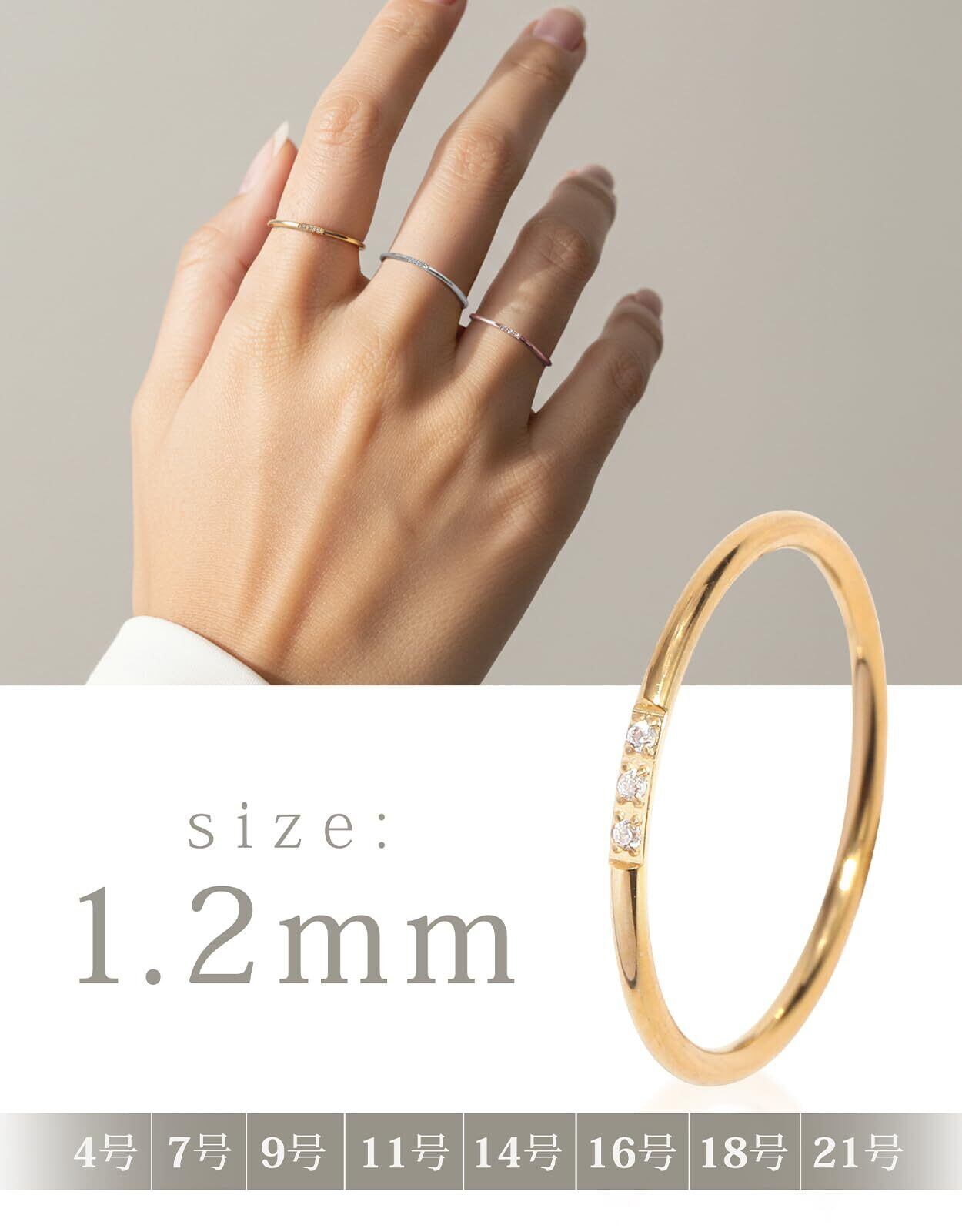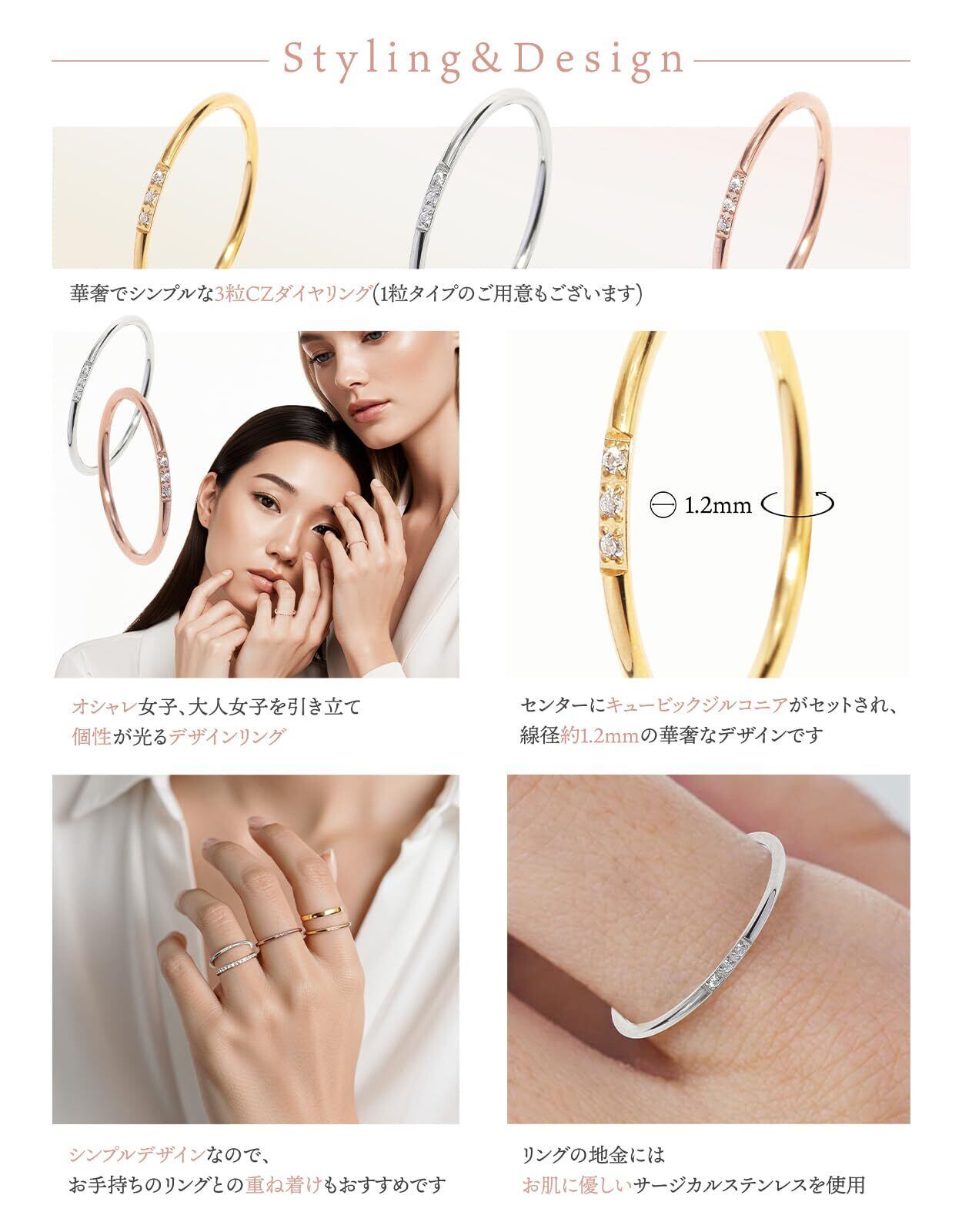 [GREG] リング 指輪 金属アレルギー対応 ニッケルフリー 錆びにくい K18GP キュービックジルコニア ステンレス 1.2mm 華奢 レディース メンズ 4号~21号 czダイヤ 3粒タイプ