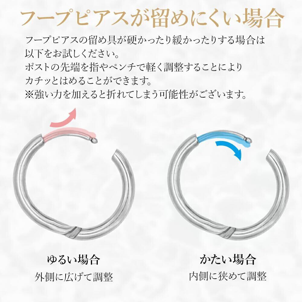 【ワンタッチ式でストレスフリー|初心者にもおすすめ】着脱が簡単な中折れ式(ワンタッチ開閉)を採用。キャッチをなくす心配がなく、ピアス初心者の方でも扱いやすい構造です。ポストが飛び出さないため、マスクやタオルにも引っかかりにくく、つけっぱなしにも◎。寝るときや運動時も快適です。