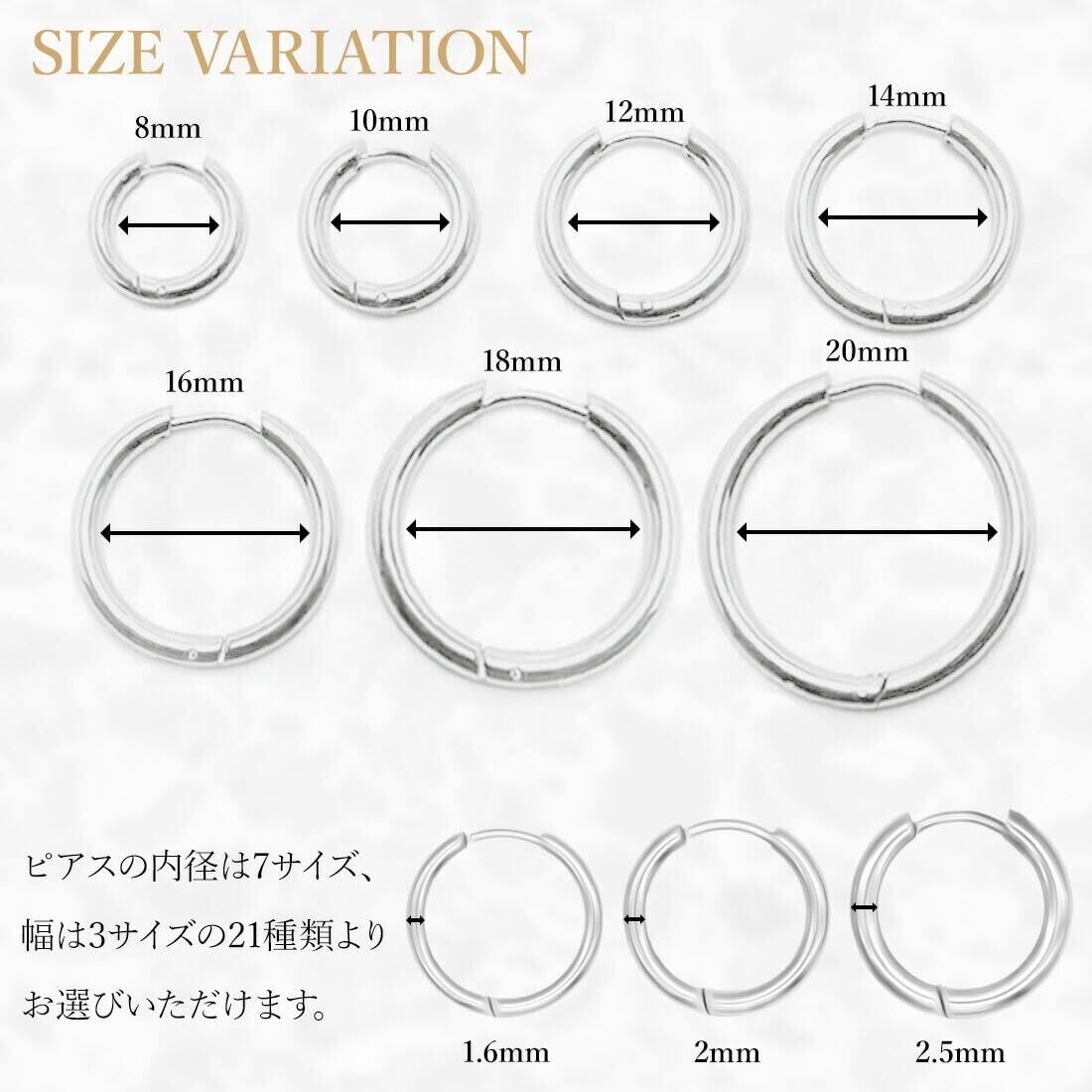 【仕様】ゲージ:18G(約1.0mm) サイズ:幅1.6mm 内径12mm 素材:サージカルステンレス カラー:シルバー