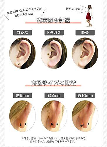 [ROQUE] ラブレットスタッド ボディピアス 18G 16G 14G カラー PVD 18K (1個売)