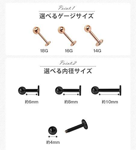 【ボディピアス 18G 16G 14G】【軟骨ピアス】カラー トラガス ピアス ラブレットスタッド 定番 シンプル【ボディーピアス】