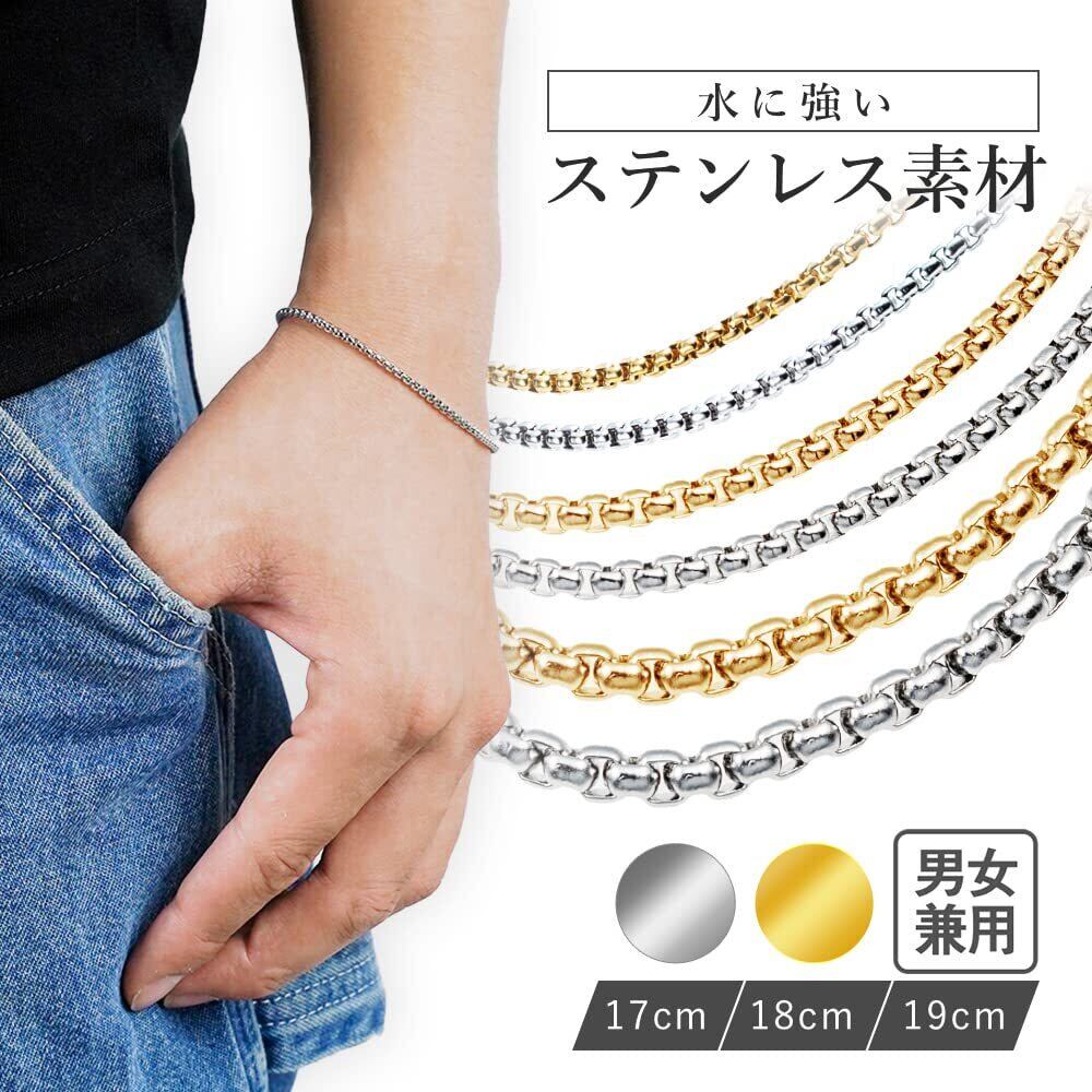 ブレスレット メンズ レディース つけっぱなし ステンレス ベネチアンチェーン チェーンブレスレット チェーン 鎖 細め シンプル シルバー ゴールド 細め
