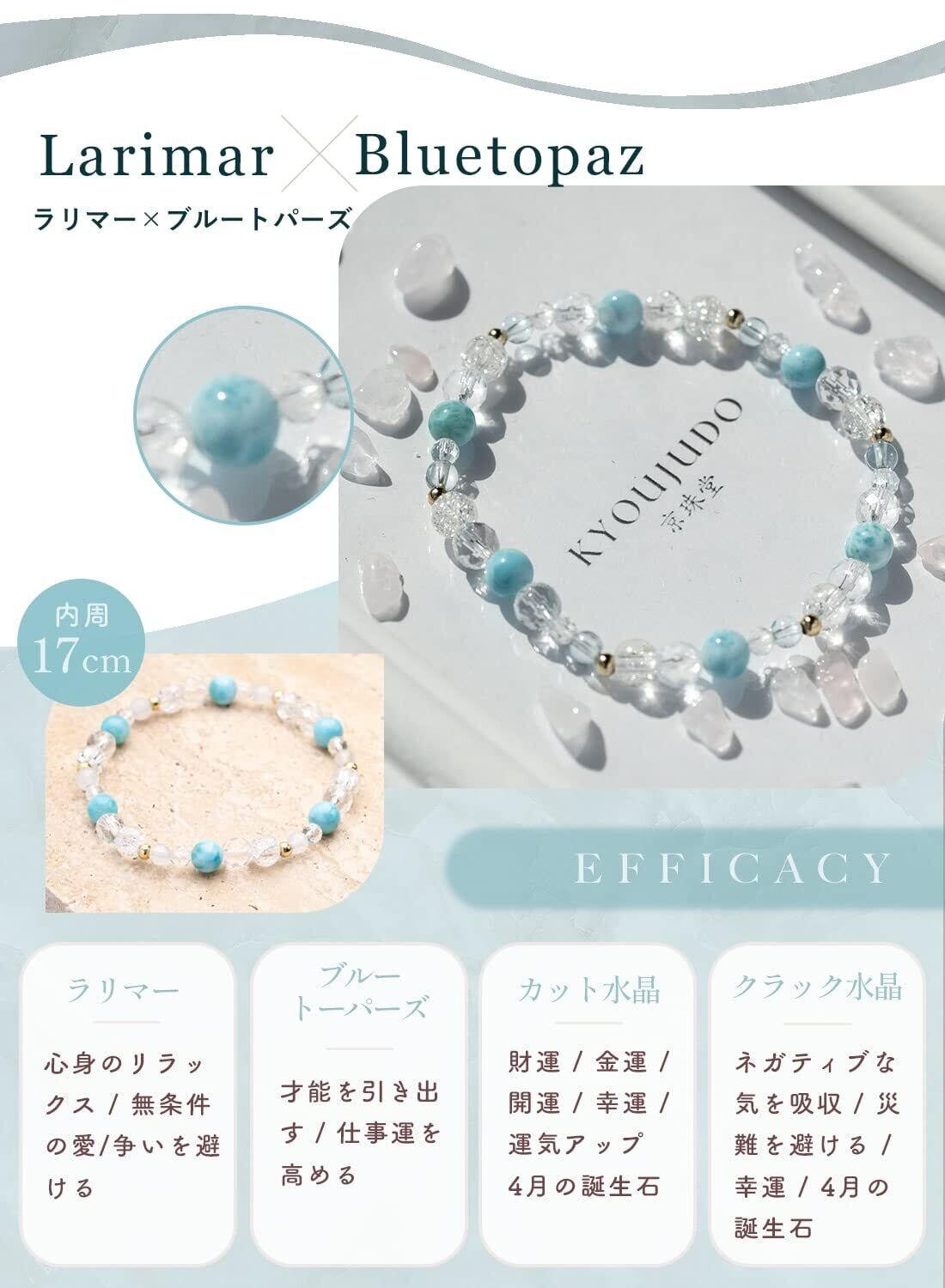 使用石:ラリマー 約6mm・ムーンストーン約4mm・クラック水晶 約6mm・64面カット水晶 約6mm・64面カット水晶約4mm