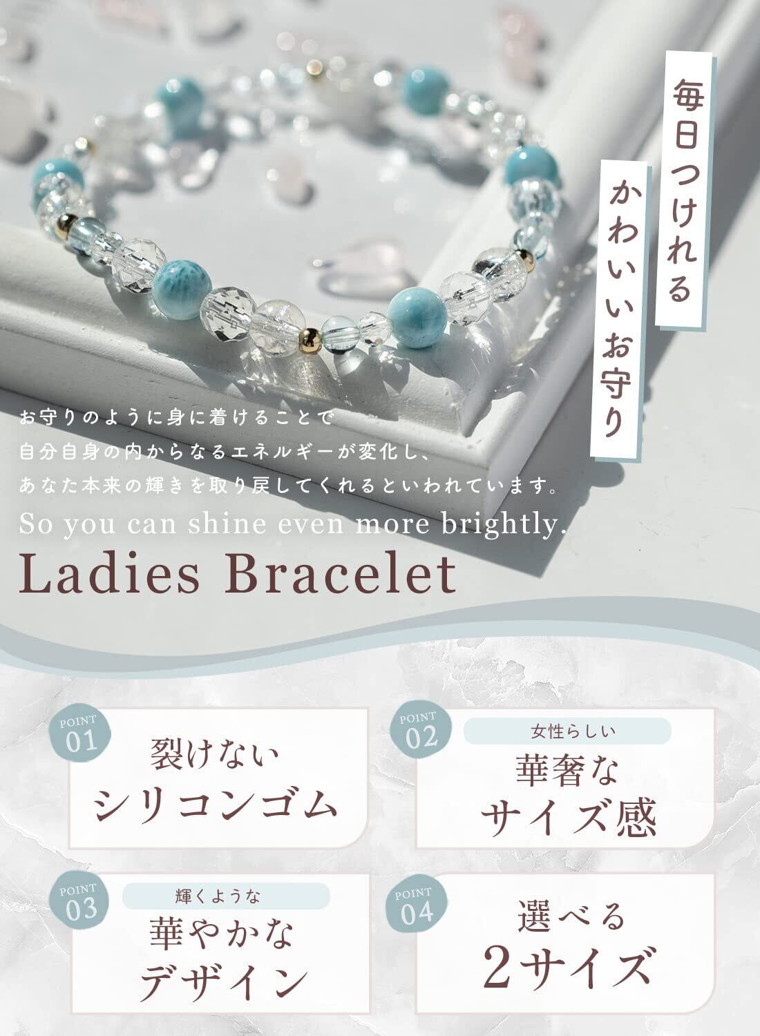 日常の生活で ブレスレット が避けたり、切れてしまう事がないよう丈夫な シリコンゴム を使用しておりますので、長くご愛用頂けます。さらに!シリコンゴムは 透明 ! 天然石 の自然な色味を邪魔せず、 ブレスレット を 上品 に演出します。