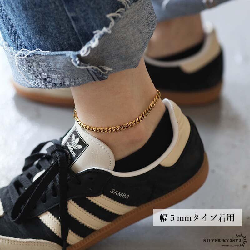[silver KYASYA]ステンレス チェーンアンクレット 喜平チェーン ゴールド 18KGP シンプル 足輪 足首 金属アレルギー対応