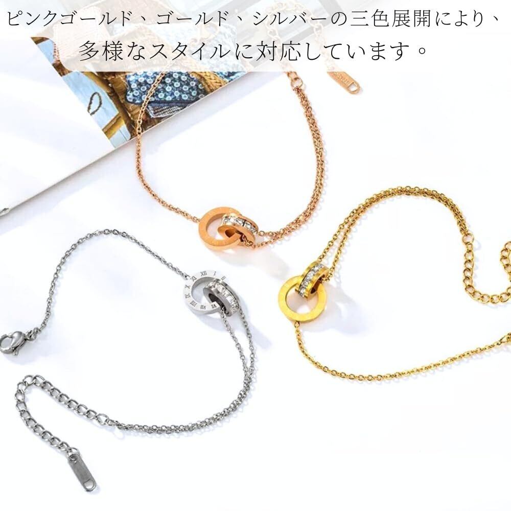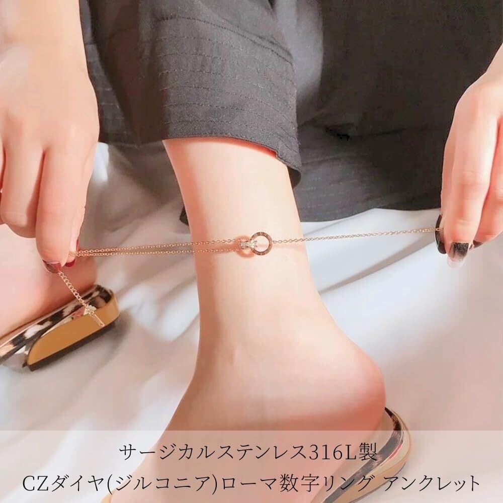 【2022最新】[Galant] CZダイヤ(ジルコニア) ローマ数字リング アンクレット ブレスレット サージカルステンレス 金属アレルギー k18 ピンクゴールド ゴールド シルバー シンプル