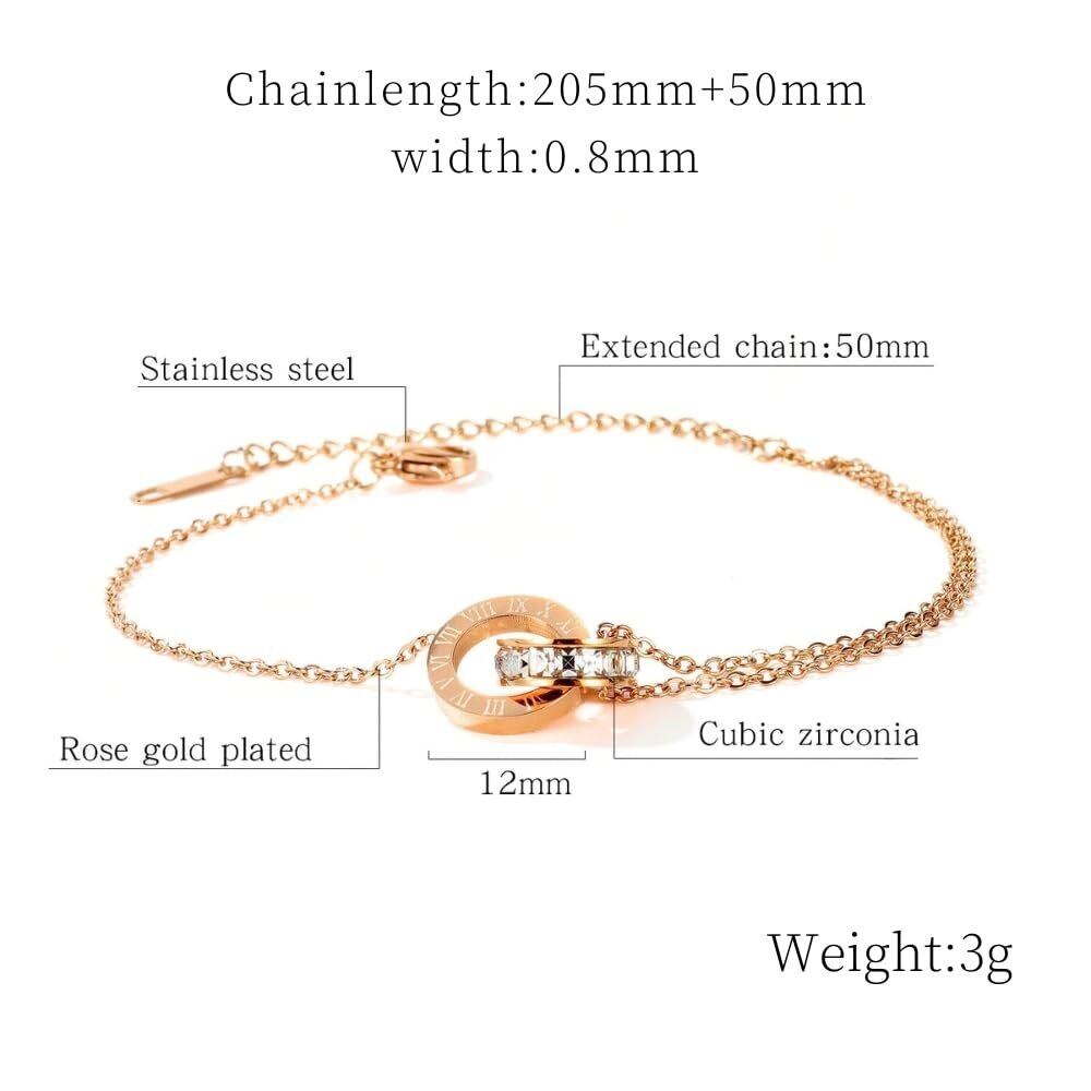 デザイン特徴: エレガントなローマ数字リング(直径12mm)とCZダイヤが織りなす上品な2連チェーンデザイン