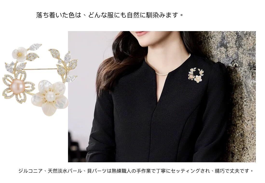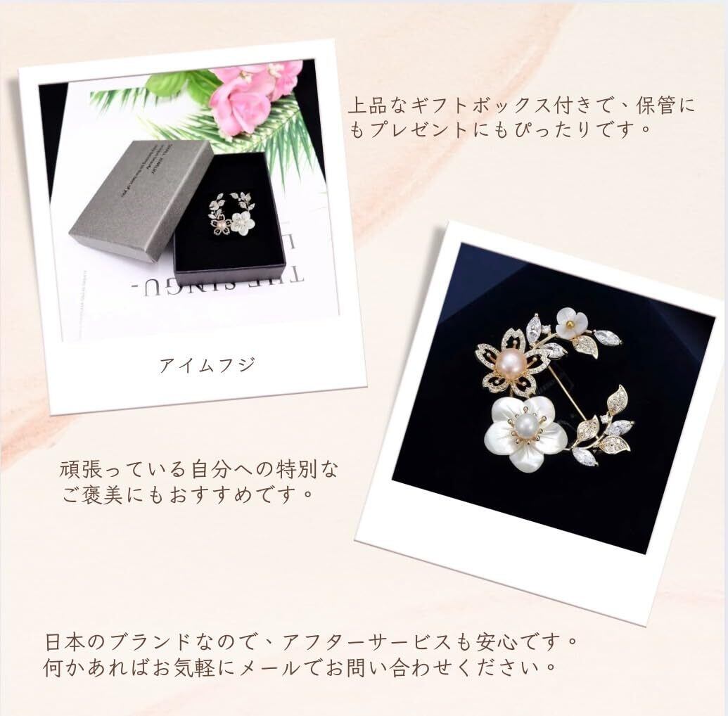 淡水真珠貝殻桜ブローチジルコンパール花コサージュ素敵な胸飾り卒園式卒業式入学式結婚式発表会面接パーティー用 お誕生日記念日クリスマス母の日お祝いに女性への贈り物 ギフトケース付き