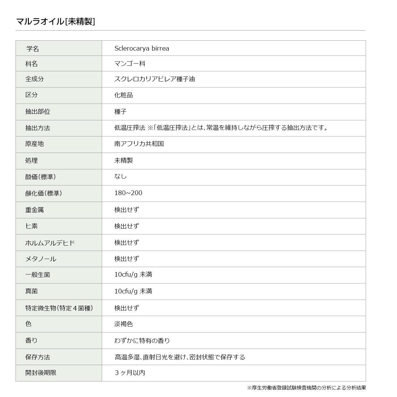全成分 スクレロカリアビレア種子油 / 抽出部位 種子
