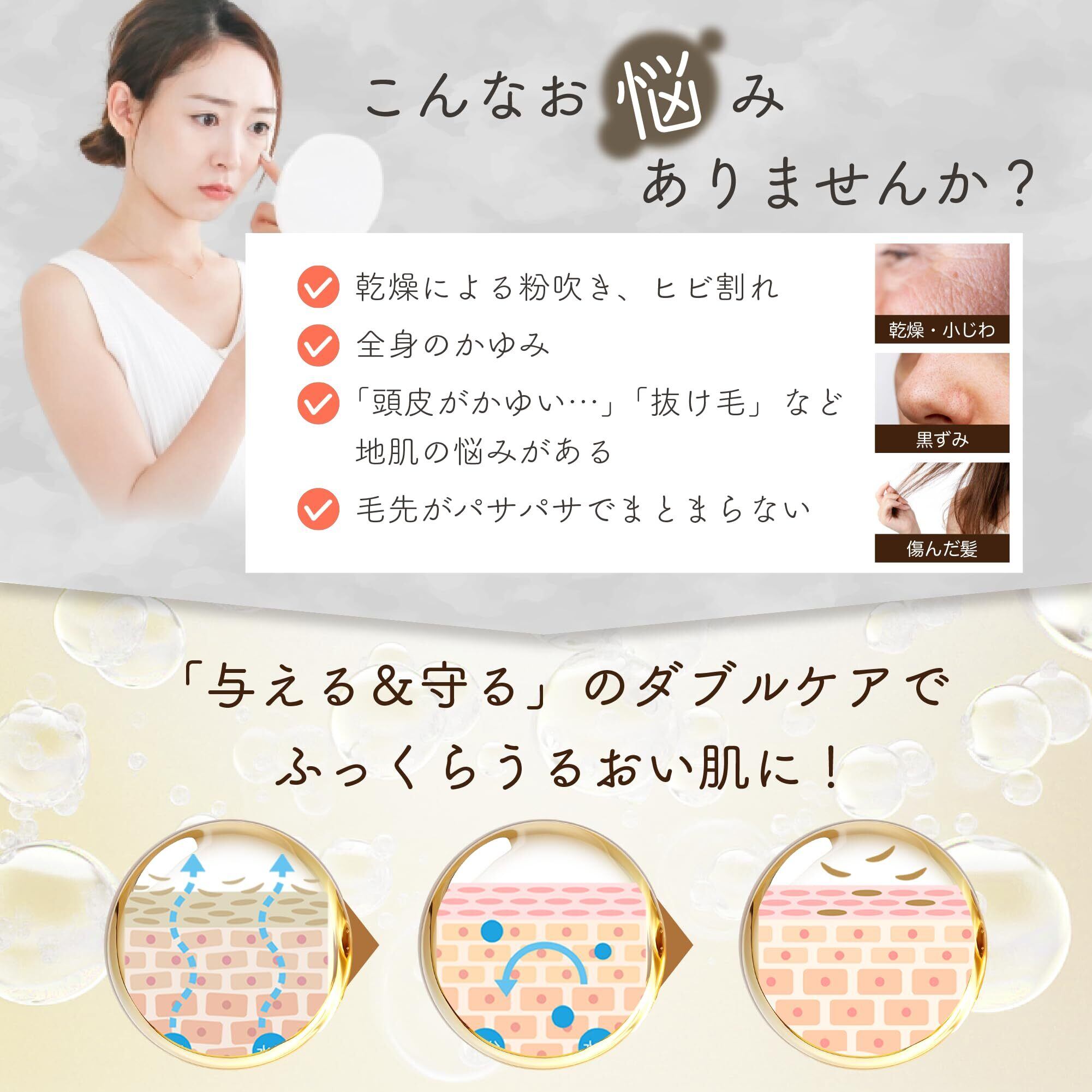 【こんな方にオススメ!】乾燥肌やかさつきが気になる、肌のツヤやハリがなくなった、保湿製品を色々試したが中々合うものがない・・・そんな肌トラブルにお悩みの方にも効果的!自然由来の成分が肌を穏やかに整え、トラブルの予防にも役立ちます。