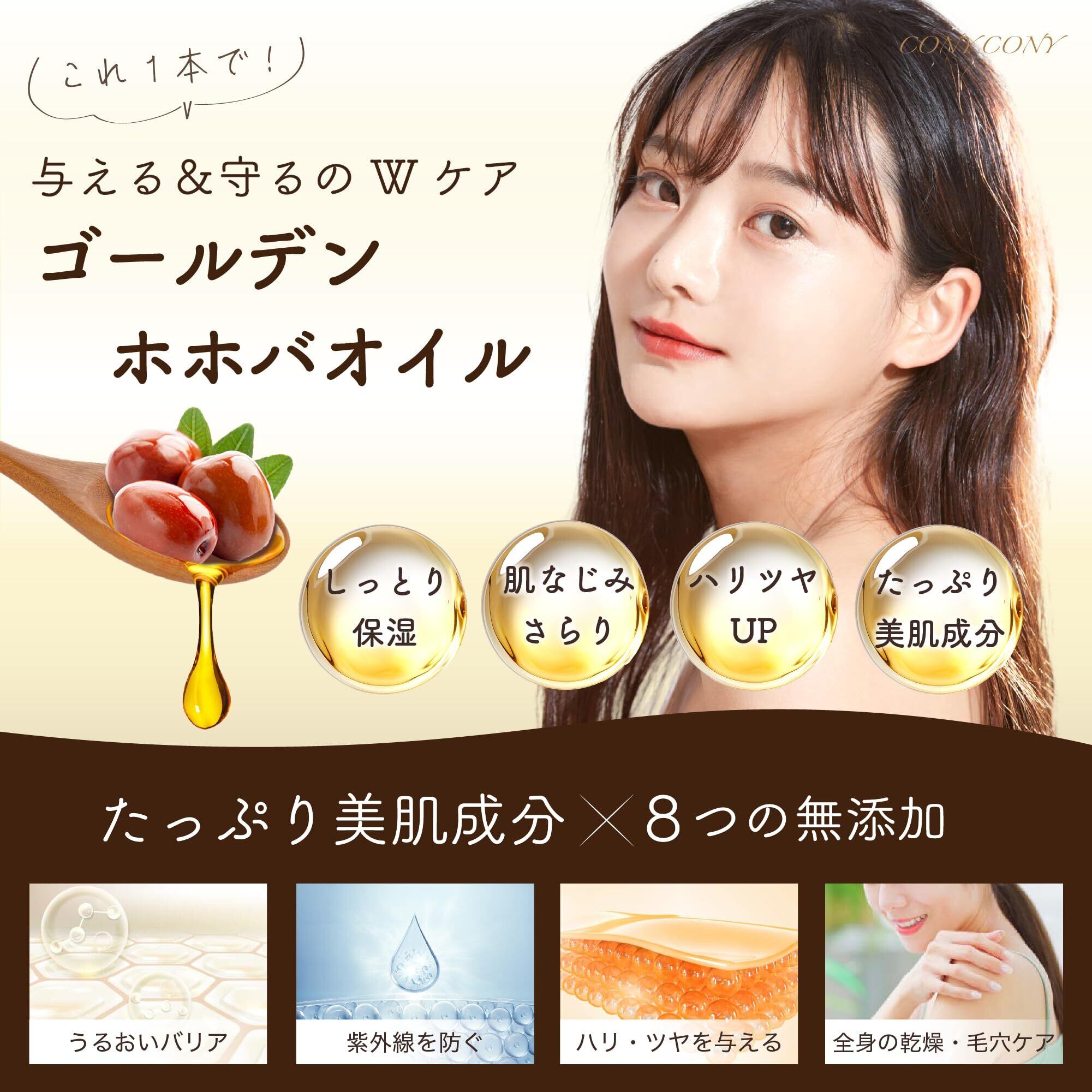 【100%天然由来成分で肌と髪に栄養をたっぷり補給!】CONYCONYのゴールデンホホバオイルは、非加熱で精製された純粋なオイルで、ビタミンEやその他の栄養素が豊富に含まれています。乾燥や肌トラブルに悩むあなたにぴったりの、高保湿・高栄養のオイルです。