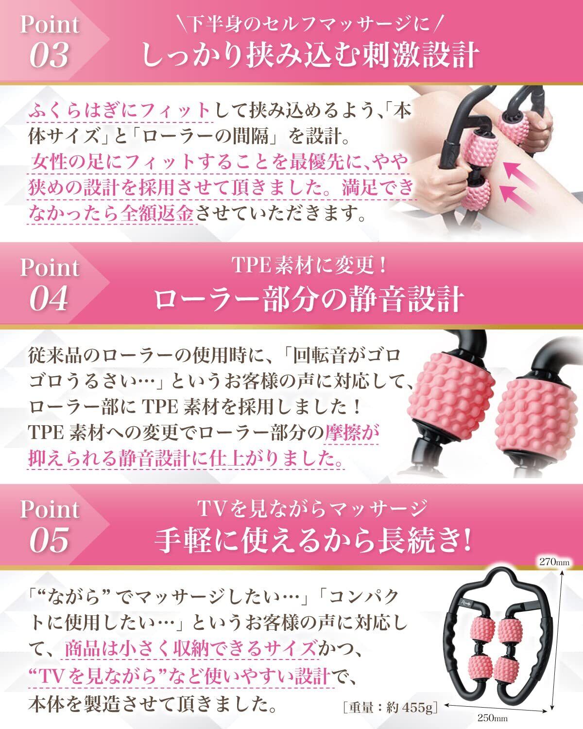 【特価商品】【エステティシャン監修】 マッサージローラー マッサージ ローラー ふくらはぎ 美脚 むくみ 解消 筋膜リリース 筋膜ローラー ほぐし 挟む式 (ピンク)