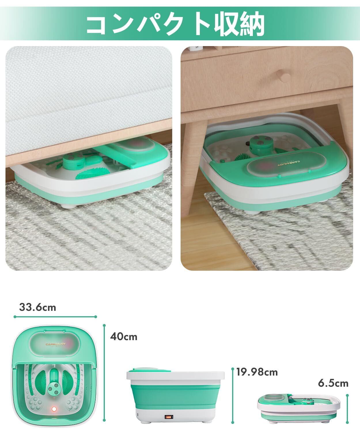 折り畳め フットバス 足湯 保温 浴剤可 10L大容量 バブル機能 加熱・保温機能付き 静音設計 6個のローラー 軽石付き 角質取り 日本語取扱説明書 (ミントグリーン(基礎型))