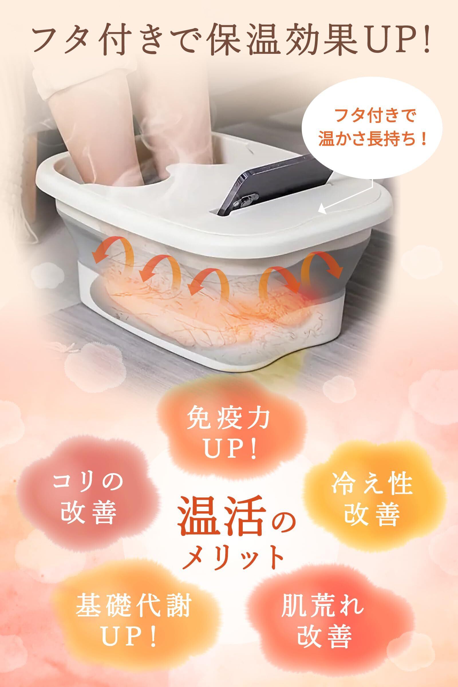 フットバス 【理学療法士監修】 足湯 バケツ 桶 折りたたみ 蓋付き【携帯電話を置ける便利なフタ付きデザイン】 足浴 足湯器 泡脚桶 折り畳み 折畳み 保温 温活 介護 足つぼマッサージ 収納 (ピンク)