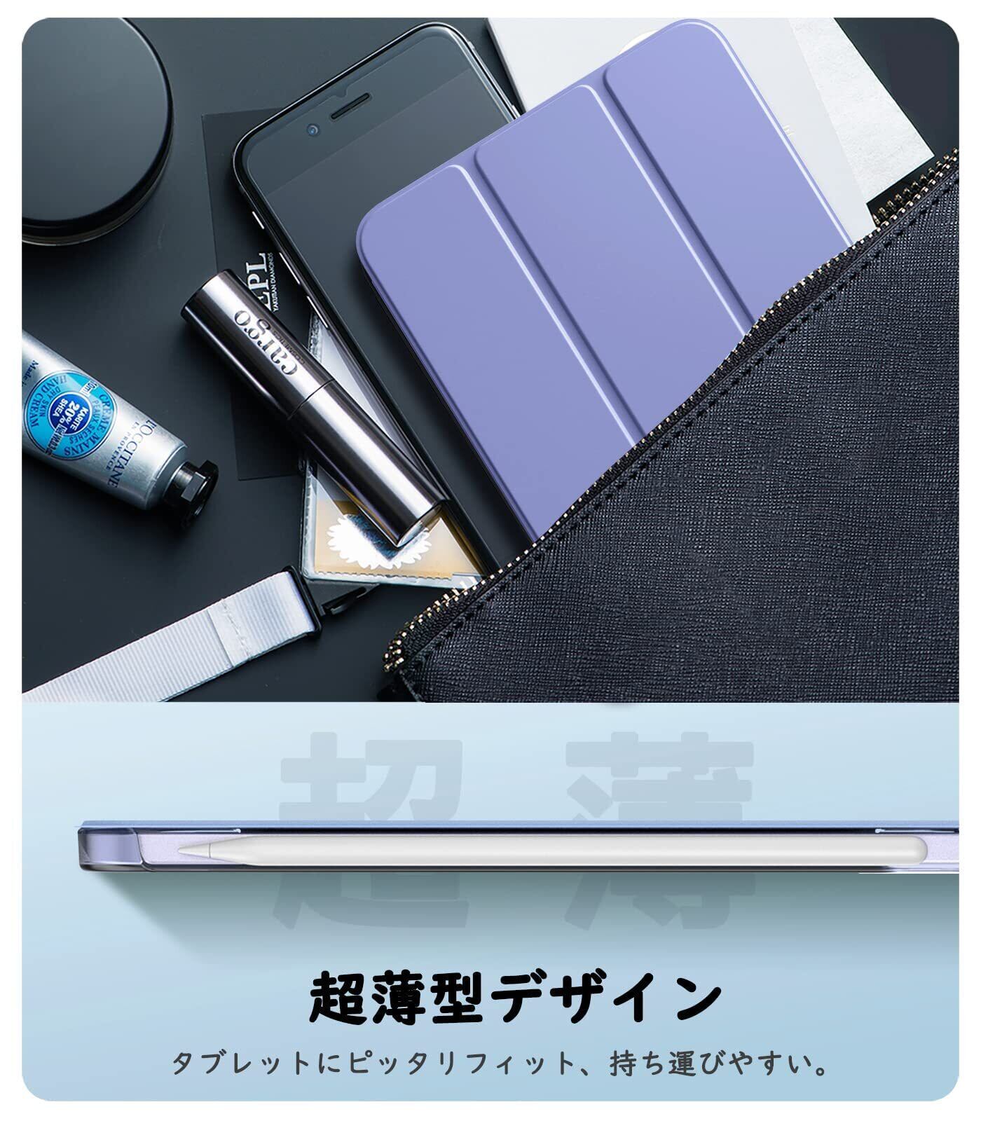 iPad Mini A17 Pro ケース iPad mini7 ケース iPad Mini6 ケース TiMOVO iPad mini 第7/6世代 カバー 8.3インチ 2024/2021 背面半透明 PC製 PUレザー 三つ折り スタンド PencilPro/第2世代ワイヤレス充電に対応 マグネット式開閉 オートスリープ機能 耐久 軽量 薄型 衝撃吸収 ラベンダー