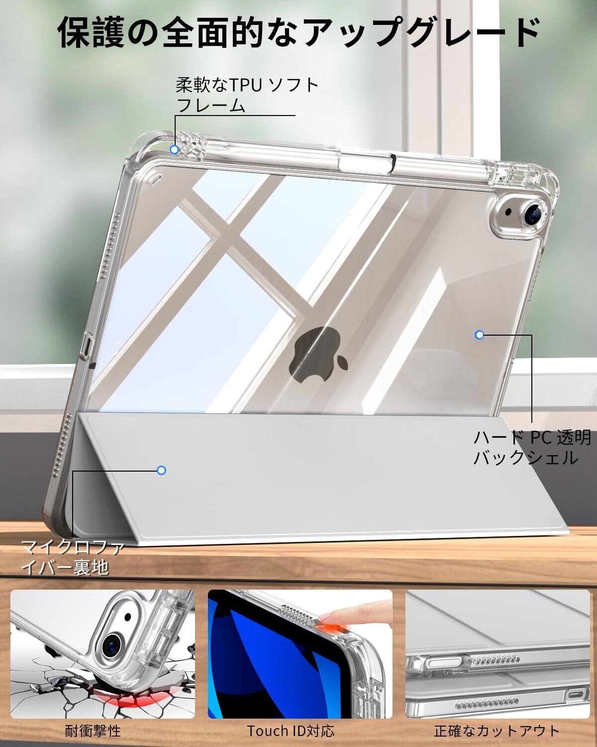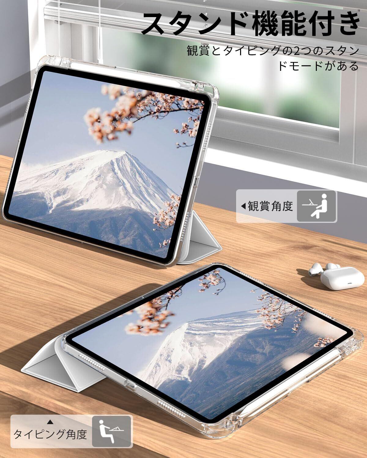 【数量限定】iPad 11世代 ケース (A16) 2025 iPad 第11/10世代 10.9インチ 2022 透明 アクリル カバー ペンシルホルダー付き 三つ折りスタンド Touch IDと オートスリープ 機能対応 超スリムス 耐衝撃 PU合成レザー カバー グレー