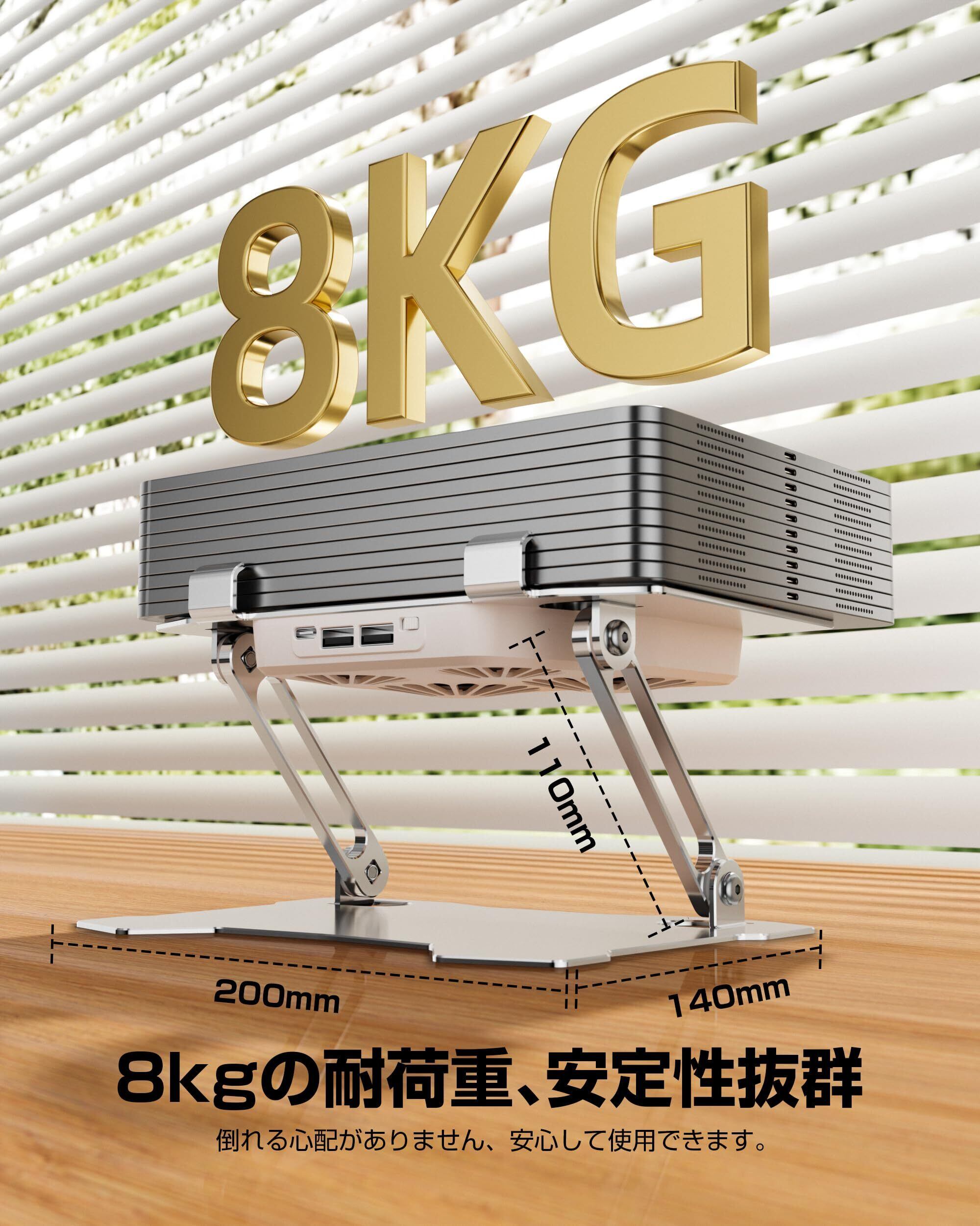 【アルミ合金製】スタンドは高品質なアルミニウム合金で作られた、精密加工および研磨して、面取り加工があり、丈夫な回転軸に付属な六角レンチで時計回りにひねってしかっり固定できます。長時間の使用も変わらなく、有効的に温度上昇を抑えることができます。