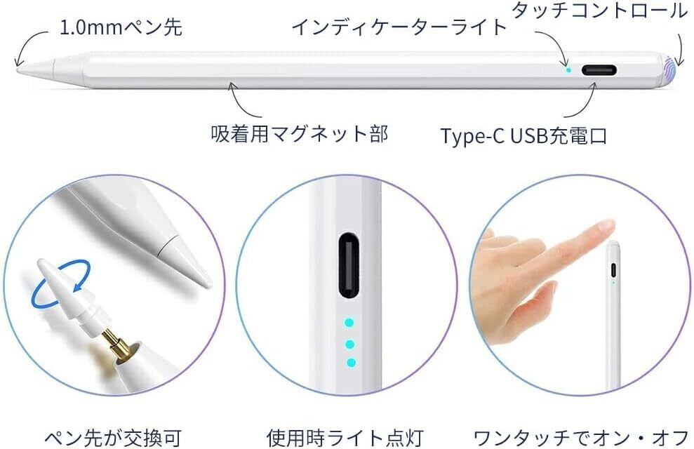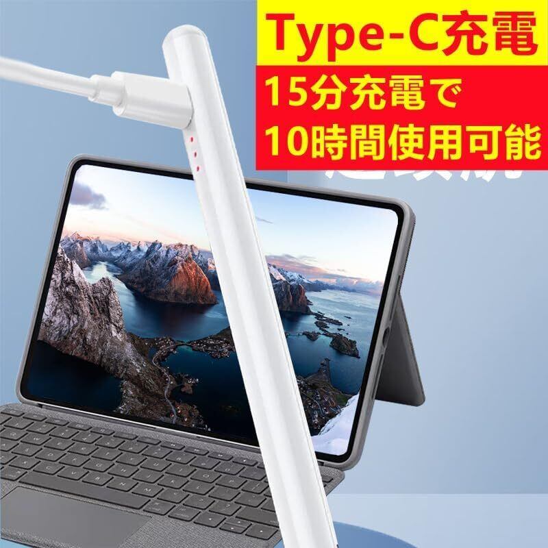 iPad専用 iPad 2018-2024用ペンシル 15分急速充電 iPadペンシル タッチペン パームリジェクション/高感度/磁気吸着