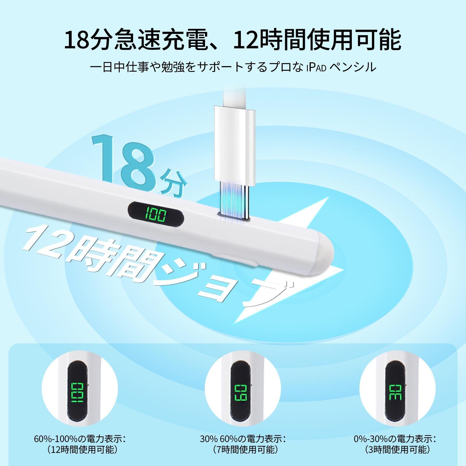 【新着商品】タッチペン 【LED電量表示・18分急速充電】タッチペン Apple Pencil互換 アップルペンシル 多機種対応スタイラスペン 高感度 バッテリー残量表示/Type-C充電/傾き感知/磁気吸着/パームリジェクション/自動スリープ iPad/Pro/Air/mini/Android対応