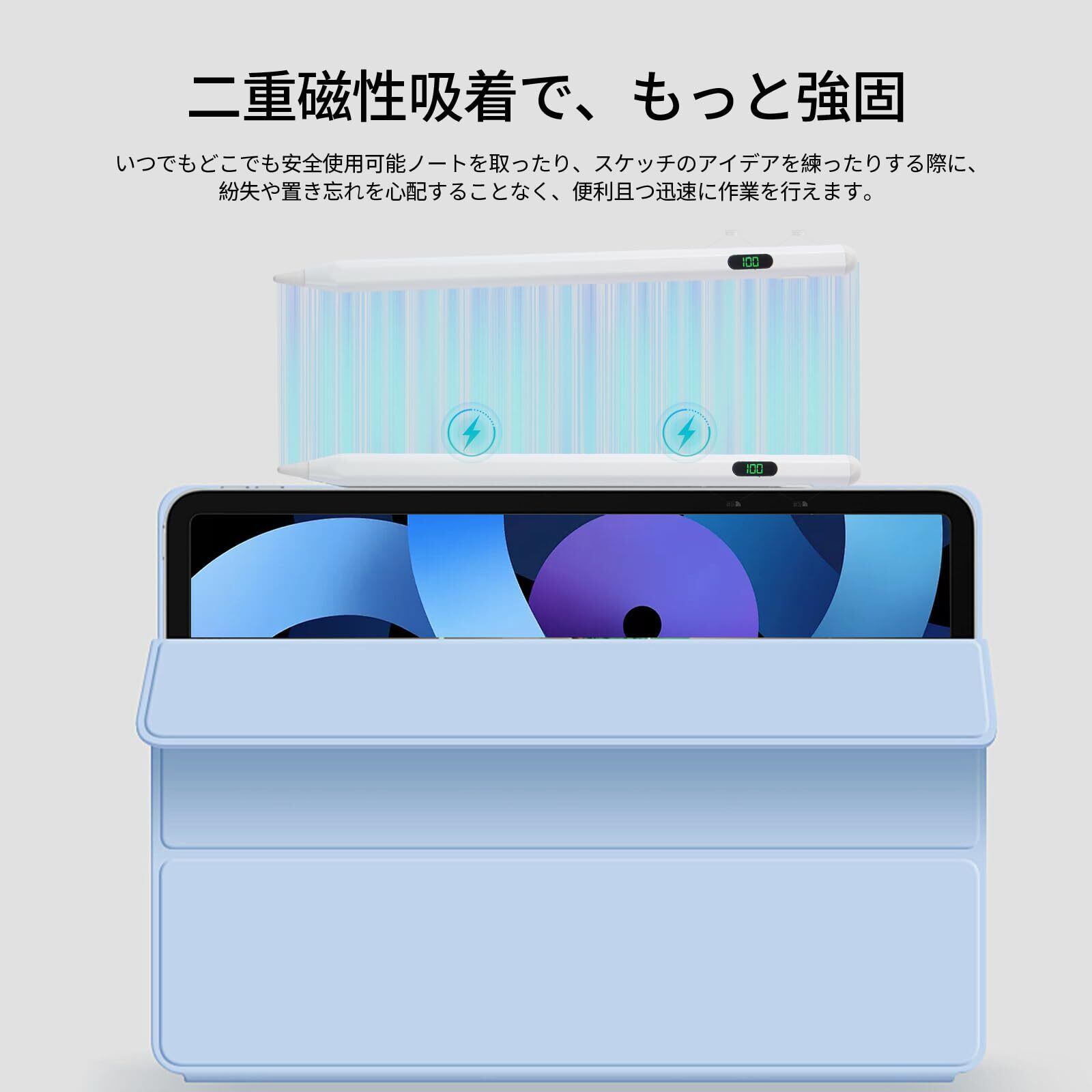 【二重磁性吸着・自動シャットダウン】このタッチペンは2倍の超強力マグネットを搭載しており、iPadにしっかりと吸着するため、持ち運びが非常に便利です。タッチペンを探したり失くしたりする心配がなく、必要なときにすぐに取り出せます。また、タッチペンは10分間操作しないと自動で電源が切れ、無駄な電力消費を抑え、バッテリー寿命を延ばします。